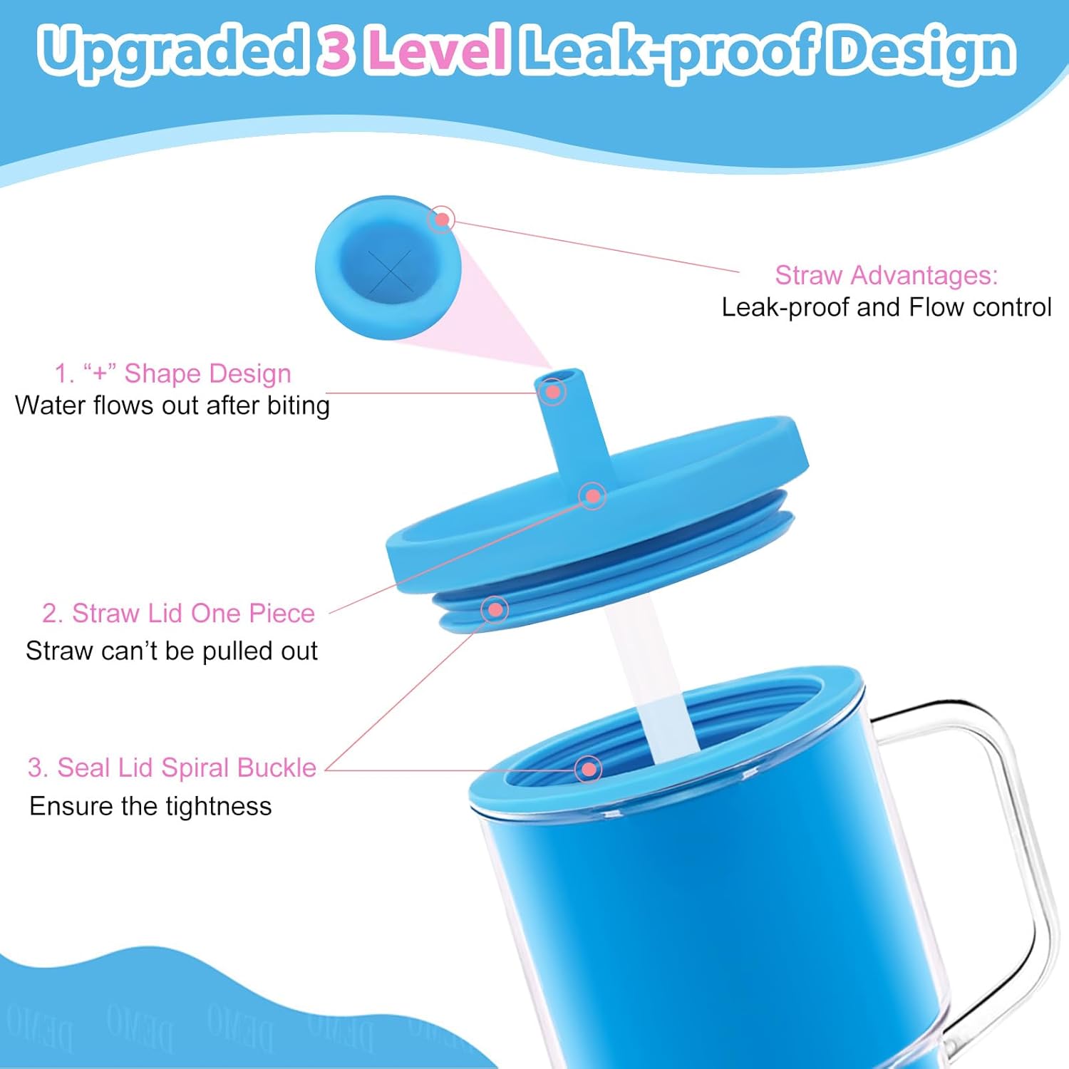 Leak-resistant Straw: Cross formed straw affords a constant circulation of liquid whereas stopping spills—even when the tumbler is turned the wrong way up! The one-piece straw lid design successfully prevents curious fingers from pulling out the straw.