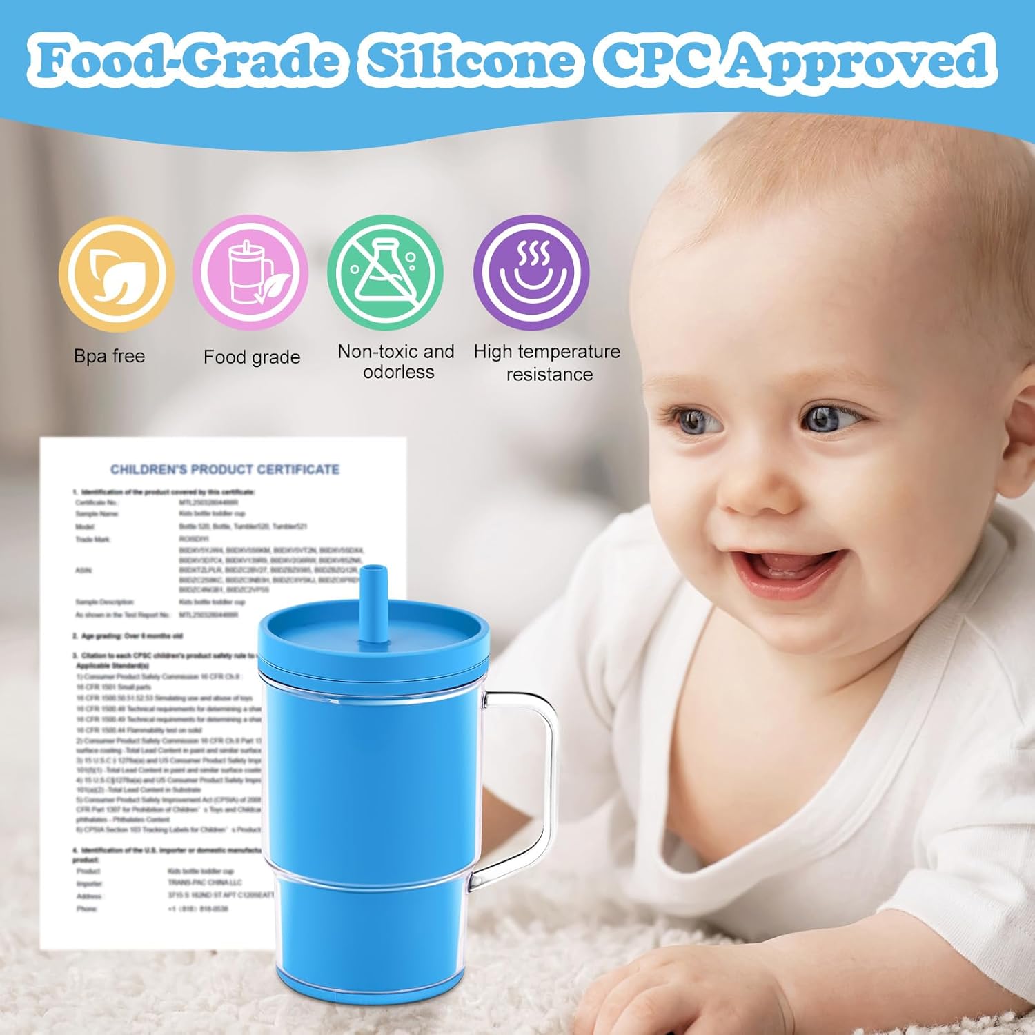 This toddler sippy cup has handed the security meals certification in america and holds the certificates. Non poisonous, odorless, lead-free, and bpa-free, you should use it with confidence.