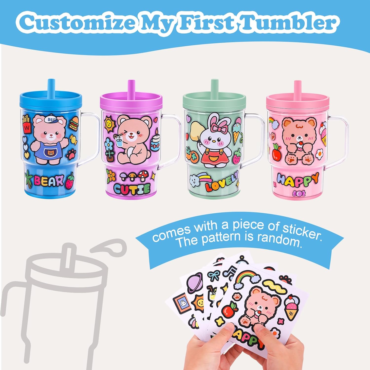Child straw cup comes with a cute sticker with a random sample. Your child can fortunately adorn their small cup whereas enhancing their hands-on potential.