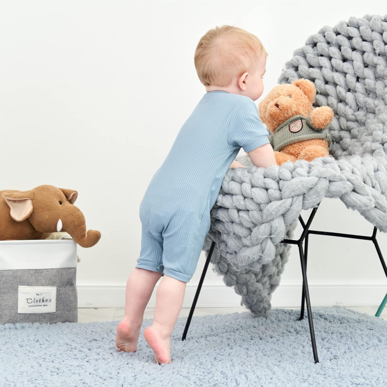 95% Cotton, 5% Spandex. Neck to Ankle zip closure makes garments adjustments fast. Twin Zipper for straightforward diaper adjustments.