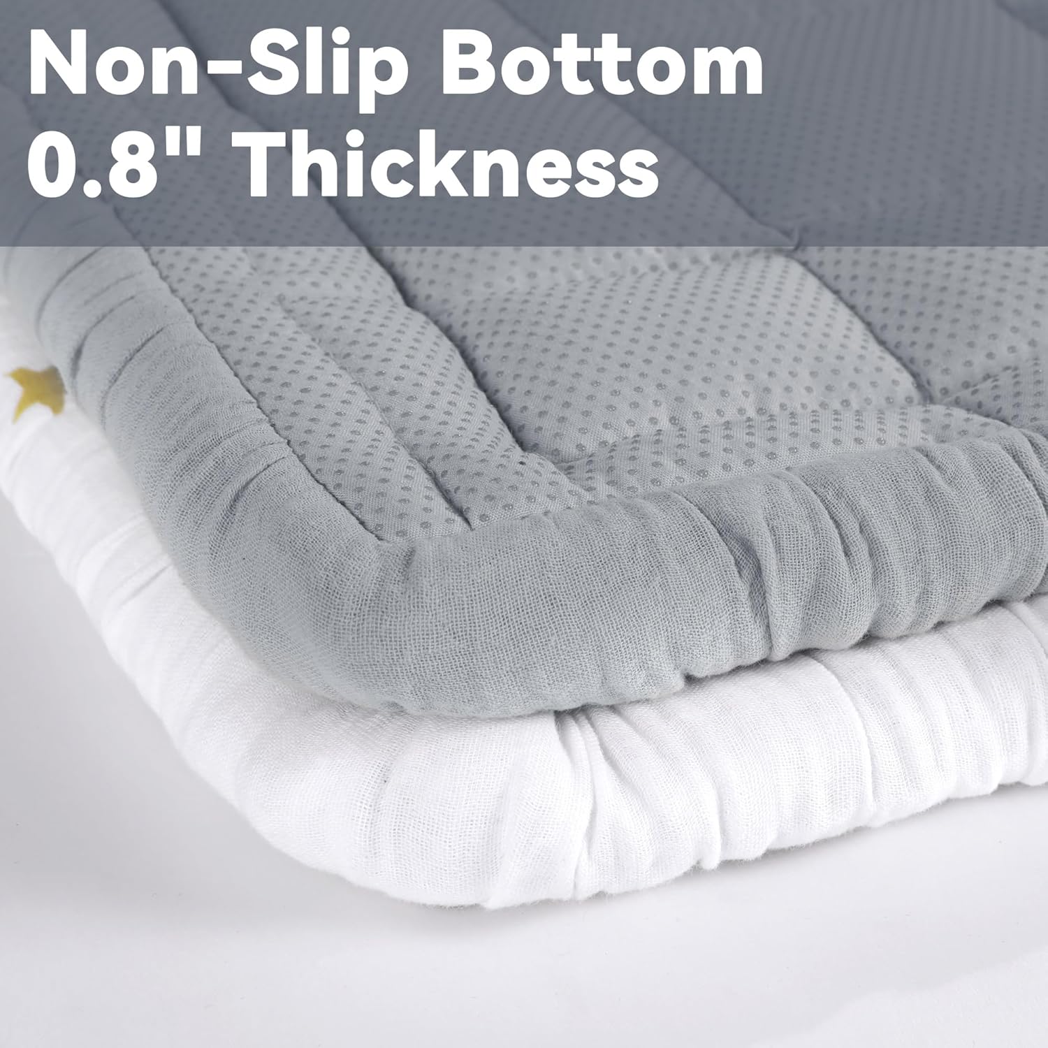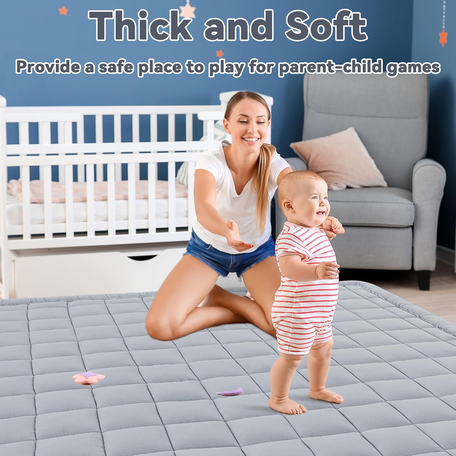 BALAPET 100% Cotton Muslin 71×59 Play Mat for Playpen, Soft Baby Playpen Mat for Kids Toddler Crawling and Play, Non-Slip and Washable Playmat, Grey