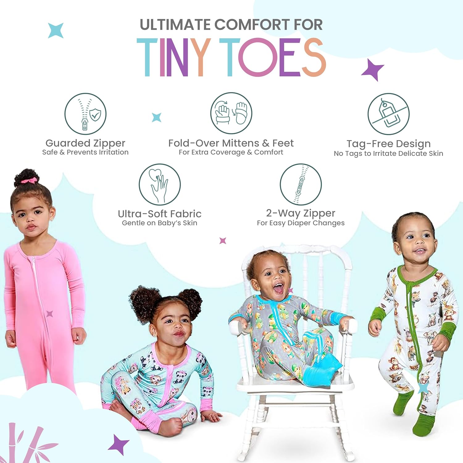 The bamboo pajamas function a fold-over hand cowl, defending your little ones’ delicate arms from the chilly. Unfold these sleeves for simple motion, permitting your bundle of pleasure to maneuver arms freely.