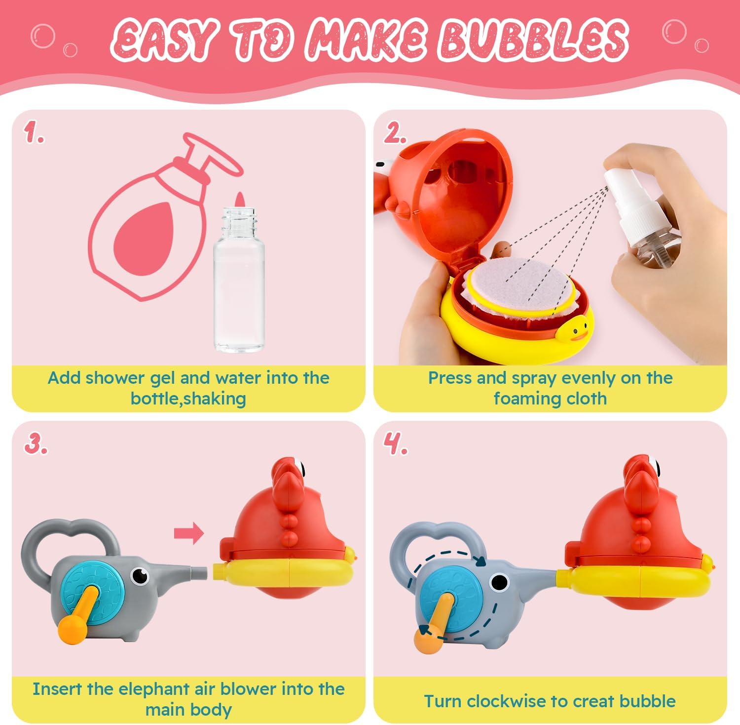 Double Happiness:The tub toys have two totally different modes: guide mode and mouth-blowing twin mannequin.Merely add bubble blowing water to your child bathtub toys, and insert the elephant blower into the principle physique and switch clockwise to create the bubble.Or use the blowpipe to make bubbles by inserting the blowpipe into the principle physique and blowing instantly.