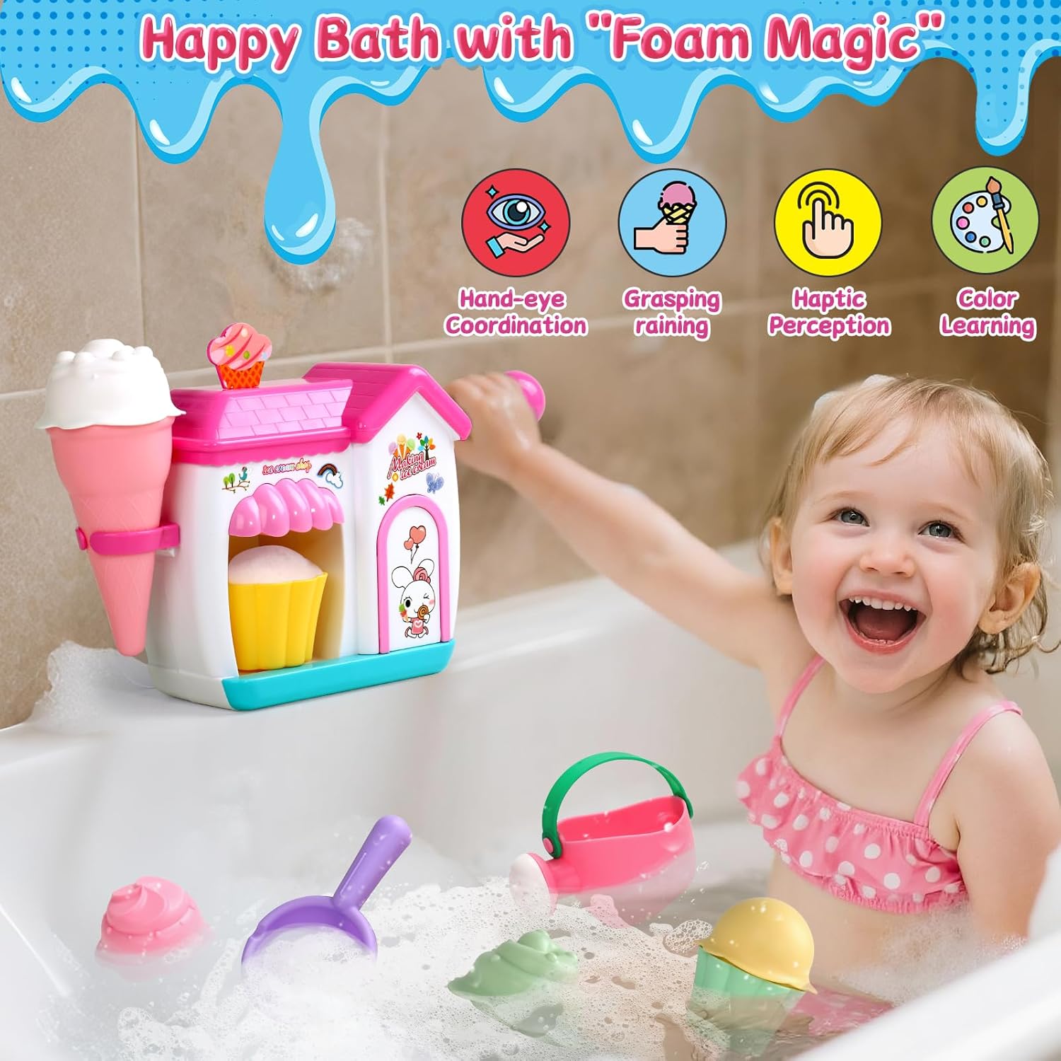 🍦 ULTIMATE ICE CREAM BATH & BEACH FUN: This bathtub toys for youths ages 4-8 create pleasant foam and bubbles with its “ice cream bathtub machine” motion, turning bathtub time into an thrilling ice cream play set journey. Greater than only a bathtub toy, equipment (cones, cups, watering can and leaky spoon) double as sand toys and snow play! No extra appropriate presents for 3 yr previous ladies.