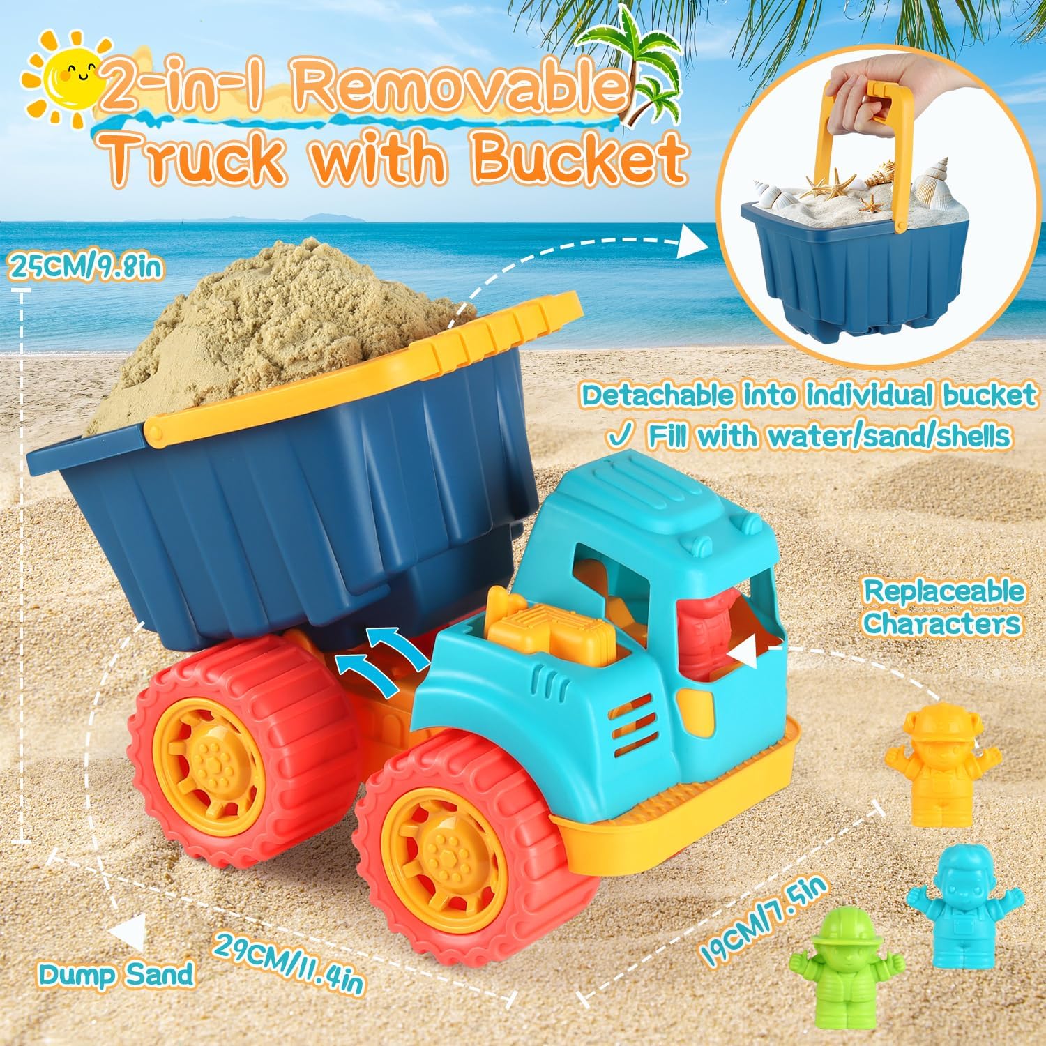 🚛 2-in-1 Dump Truck with Bucket – This youngsters seaside toys comes with a big dump truck that turns right into a detachable sand bucket for particular person use. Youngsters can fake to be little development employees – driving the truck to move and dump sand to construct a citadel, or simply take away the bucket to scoop water or acquire shells. This sand truck is a must have for development play on the seaside, inspiring creativeness and creativity