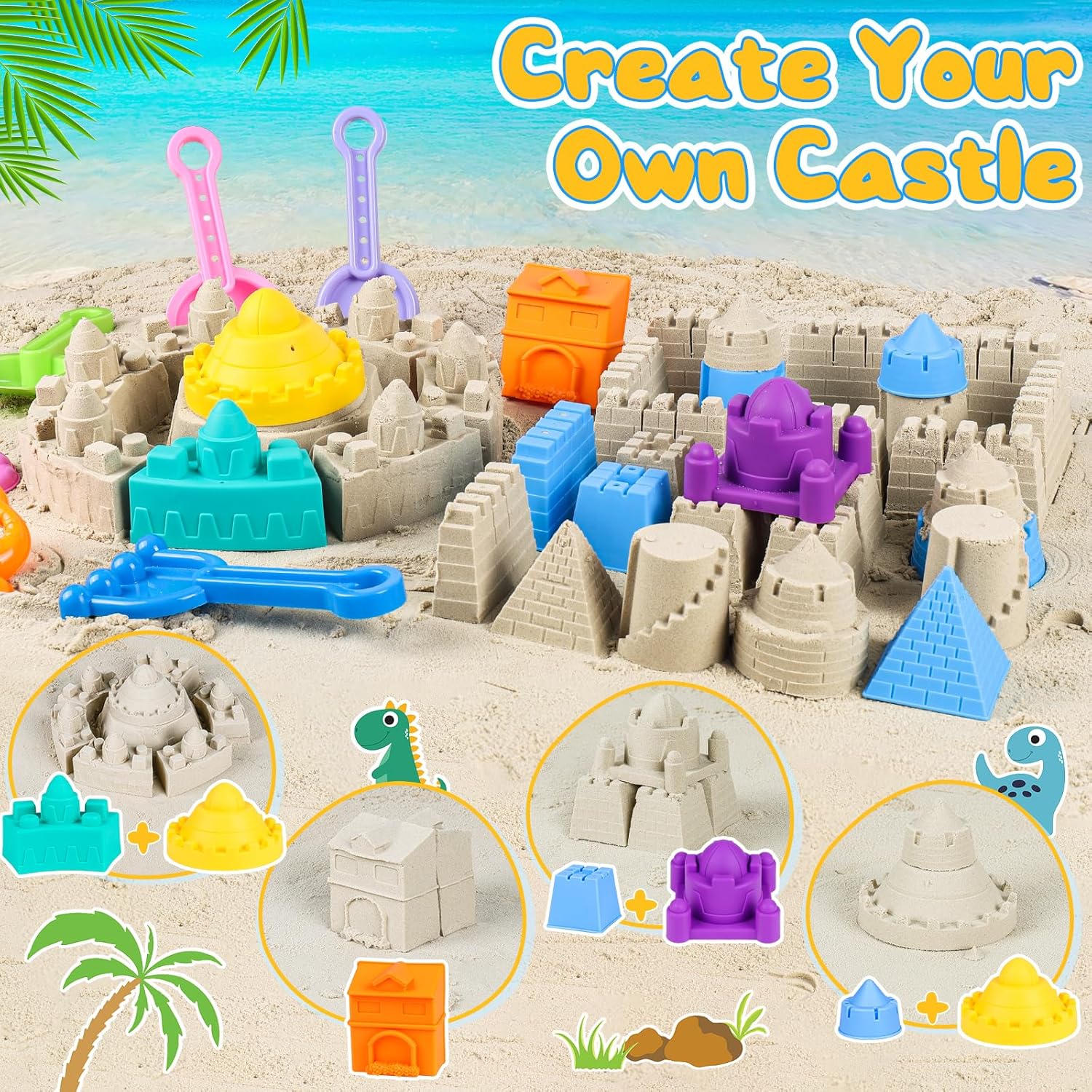 【Instructional & Limitless Summer season Seaside Enjoyable】: Our sandbox toy units are designed for multiplayer seaside recreation, fostering kids’s exploration, creativity and cooperation. The 14 completely different sand fortress toys may be freely mixed, offering limitless prospects for youngsters to create distinctive sand castles constructing collectively, dinosaur molds and Marine animal molds improve the vibrancy to the fortress world, permitting kids to create a extra full seaside world