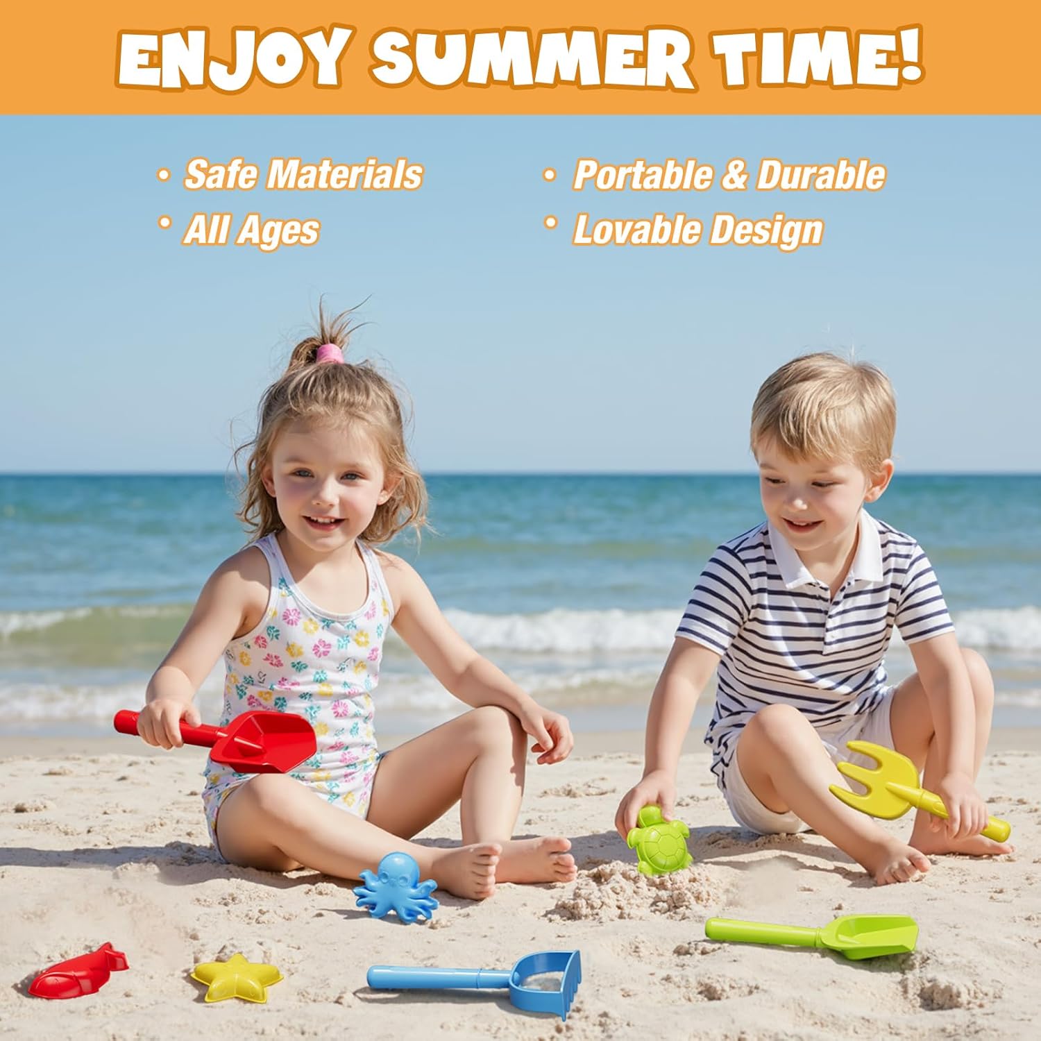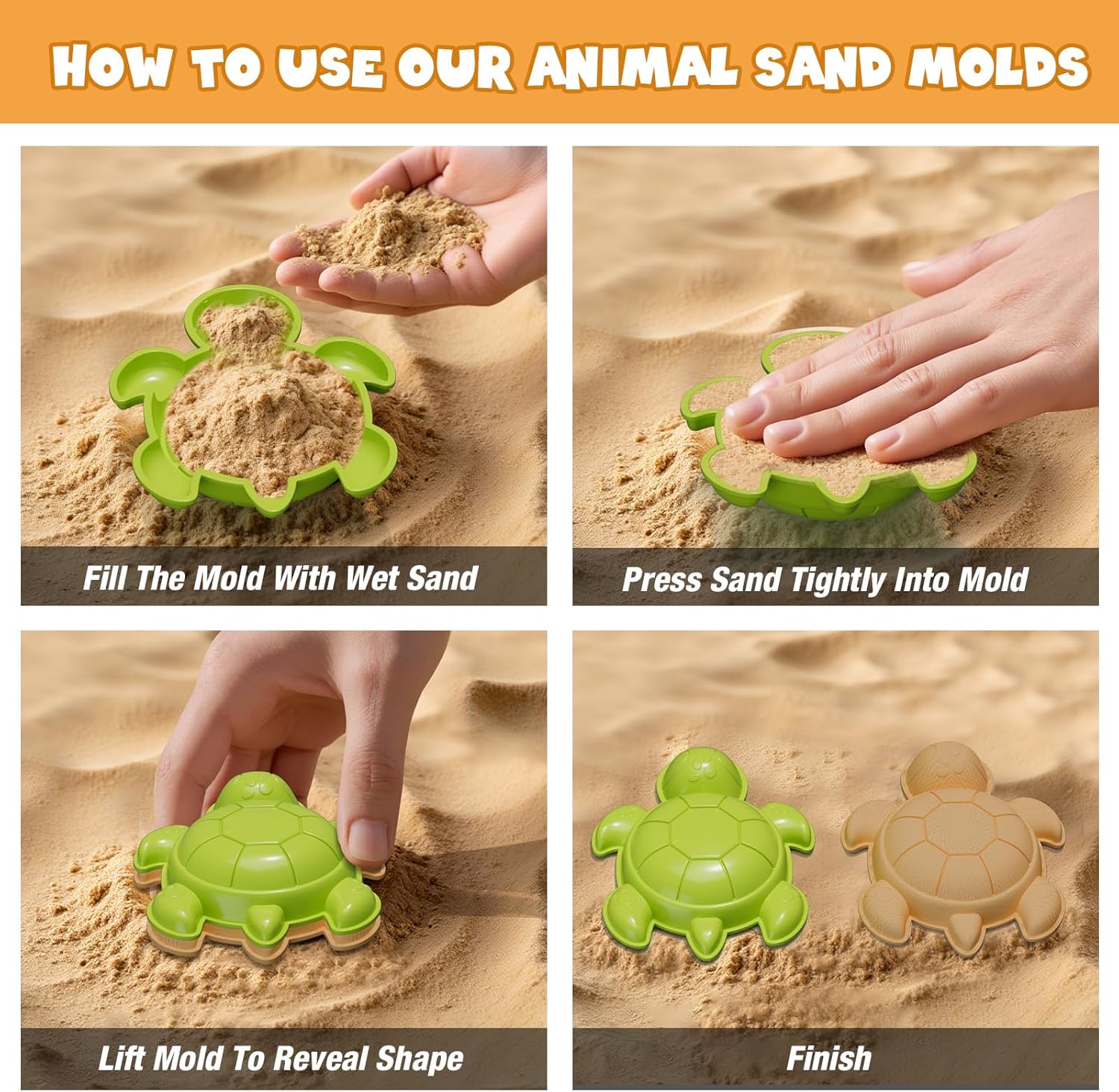 8PCS Seaside Sand Toys Play Set: HYES seaside toys embody 4 sturdy sand shovels (fork, rake, flat, pointed) and 4 sea animal molds (starfish, sharks, octopuses, turtles) for countless inventive play. You may create your individual underwater kingdom, reworking atypical sand right into a vibrant ocean world along with your little one!