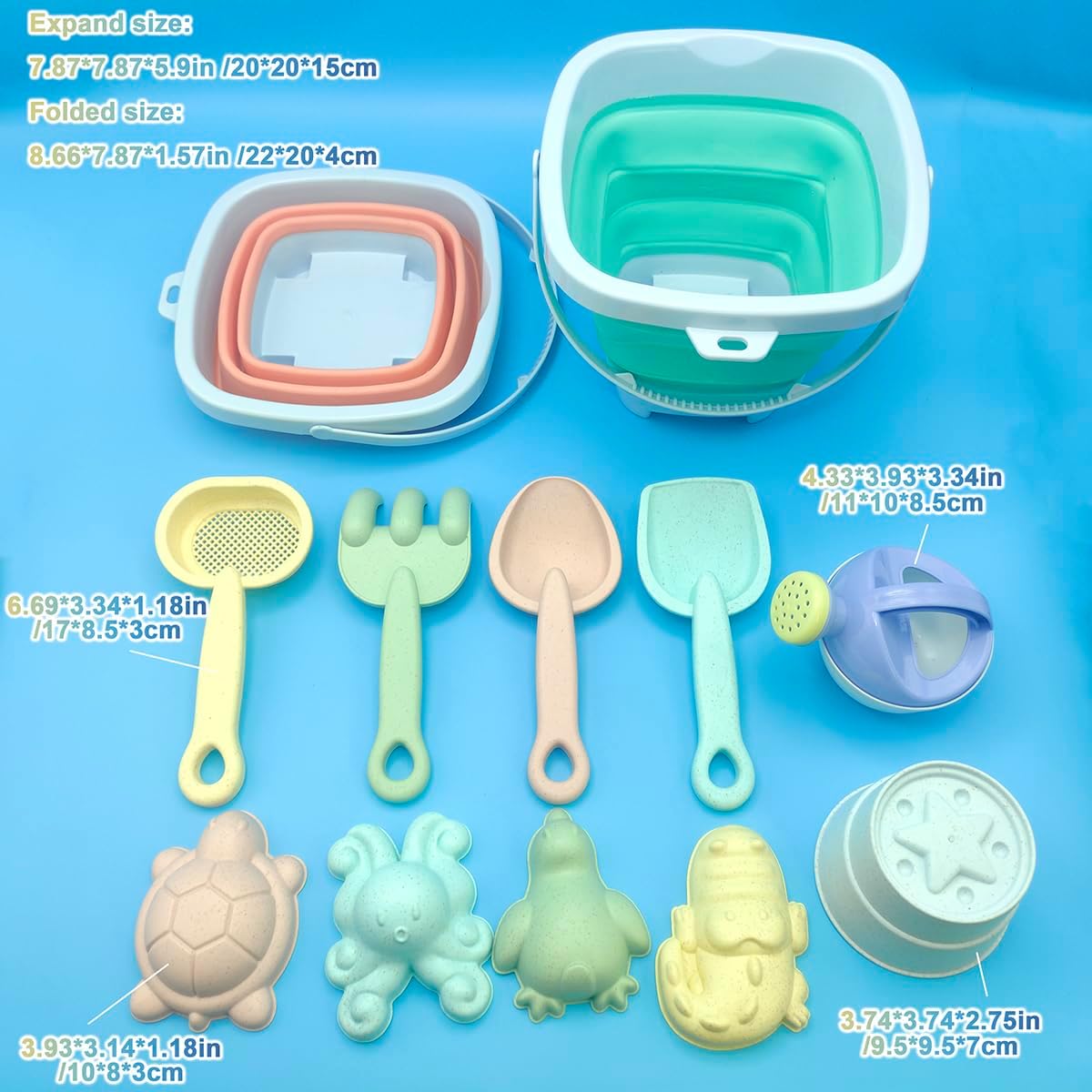 Shade Field Seashore Sand Toys Set] embrace :Huge Backpack mesh bag*1,Collapsible Seashore Buckets*1, Cute animal sand molds *4(Turtle, penguin, octopus, crocodile),shovels*4(sand shovel ,sand rake) ,watering can*1 ,small pentagram bucket*1, (ALL 12 PCS Packable Seashore Sand Toys Set) These journey seaside toys is for teenagers and toddlers age 3 4 5 6 7 8 9 10 +.