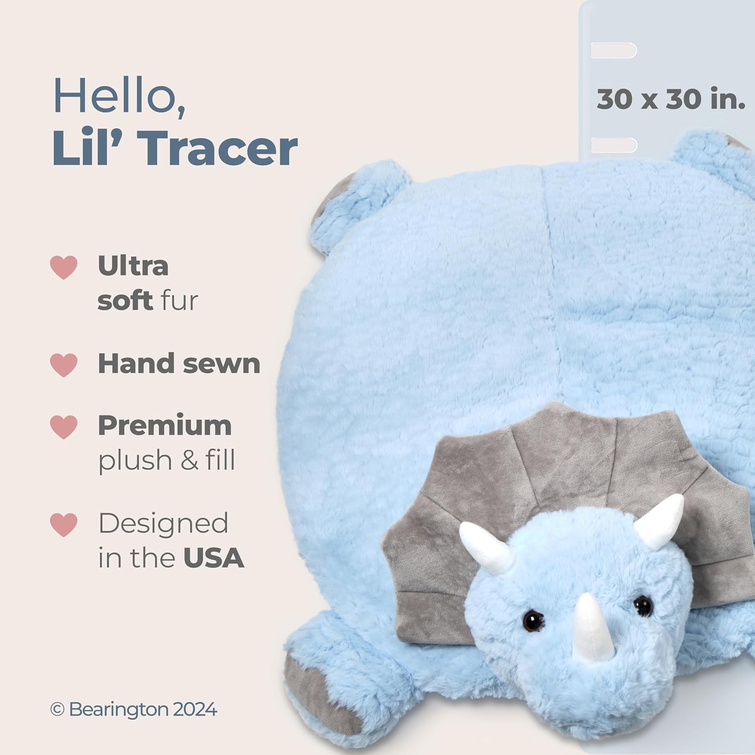 LIL’ TRACER PLUSH BLANKET: The Bearington Child Lil’ Tracer Tummy Time Play Mat gives an opulent and ultra-soft play floor for infants, making it an excellent child mat for flooring tummy time. This lovable dinosaur play mat with velour lining and comfy material captivates your child’s consideration throughout child tummy time.