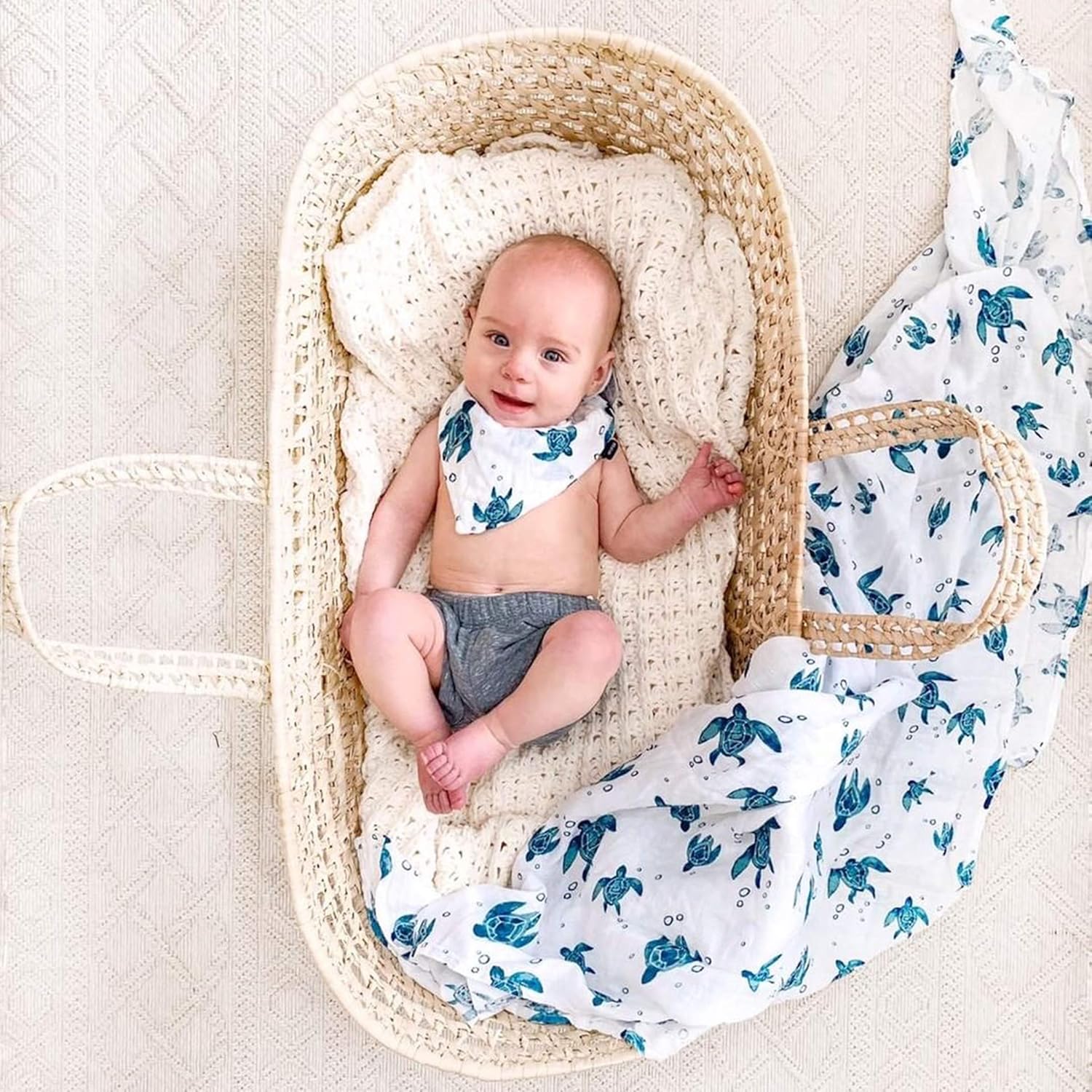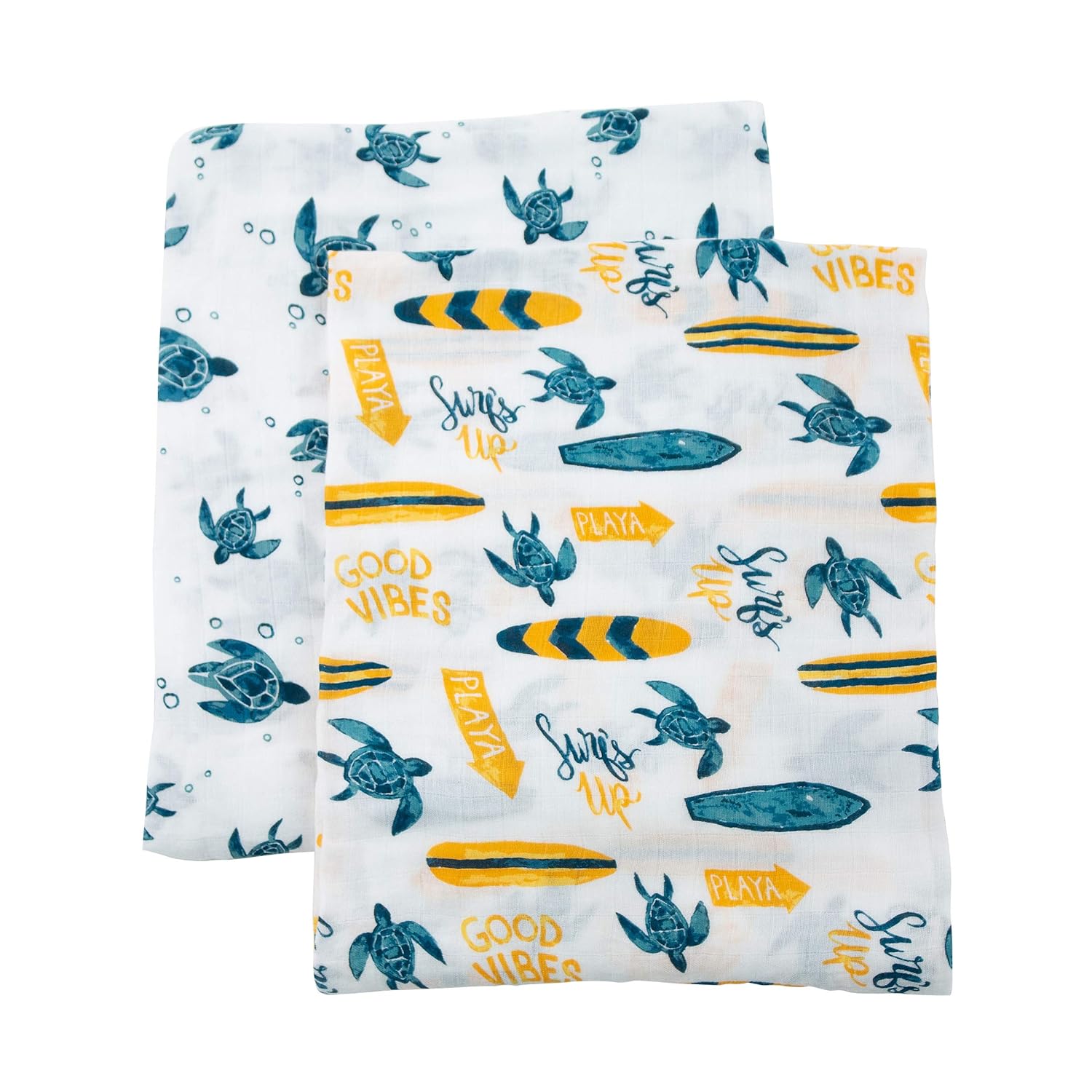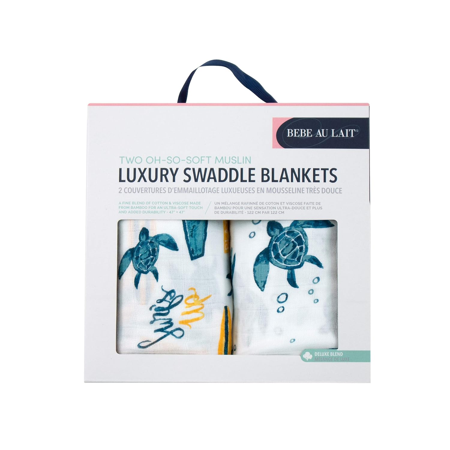 Bebe au Lait Oh So Soft Muslin Swaddle Blanket Set, Soft Muslin Design, Stylish Pattern – Surf and Sea Turtles , 47×47 Inch (Pack of 2)