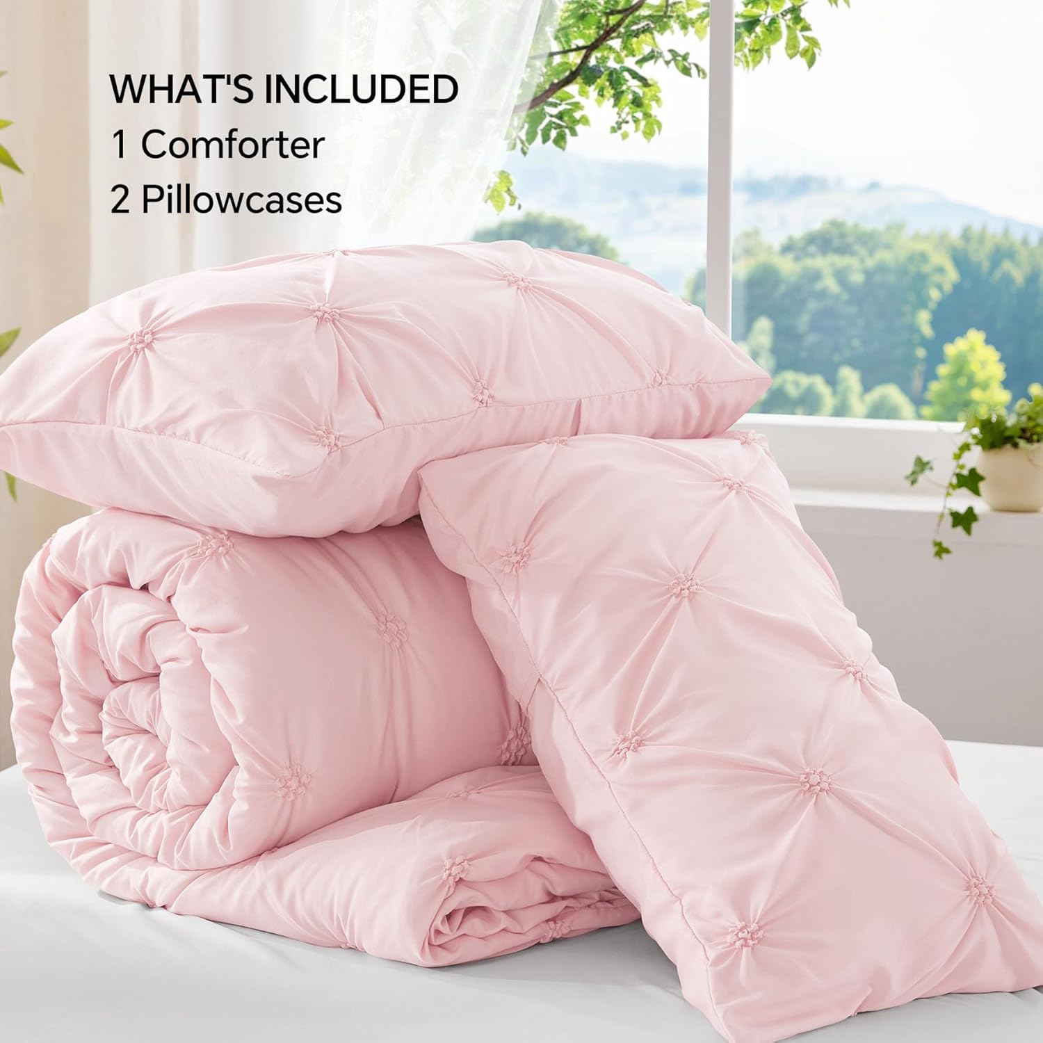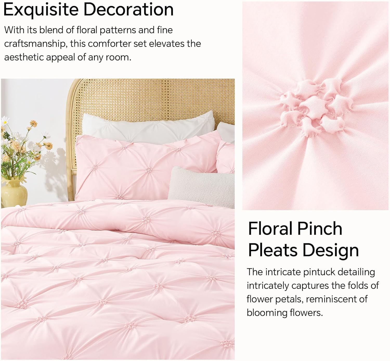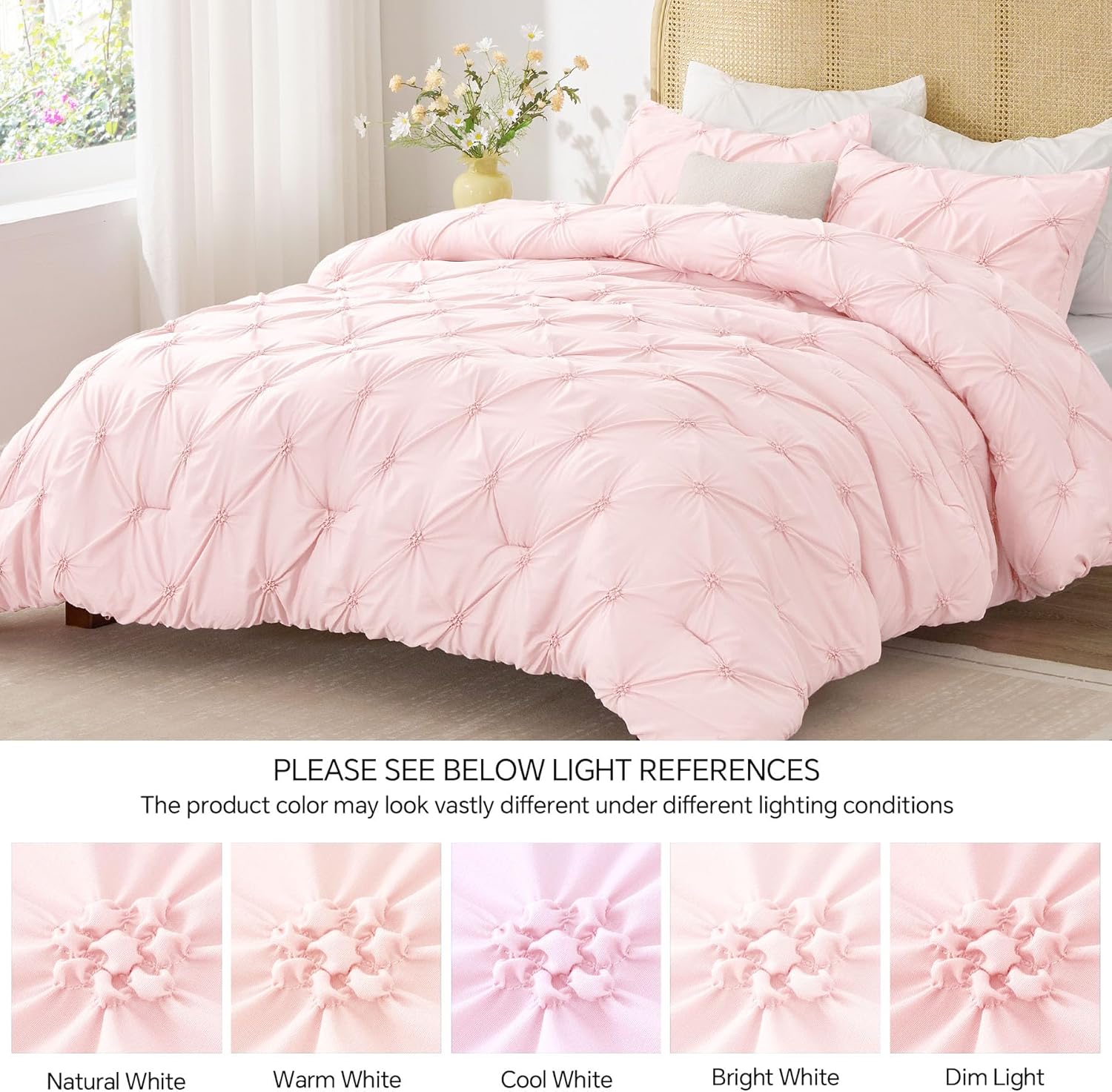 【What you may get】:This queen measurement comforter units contains 1 Comforter 88″x88″, and a couple of pillowcases 20″*26″. The white comforter is vacuum sealed, which can lead to wrinkles and compression. It is strongly recommended to wash the comforter earlier than the primary use and both tumble dry on low warmth or air it out within the solar to revive its plushness and the great thing about its pinch pleat design.