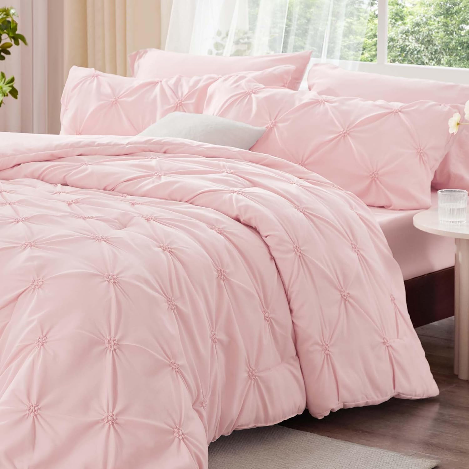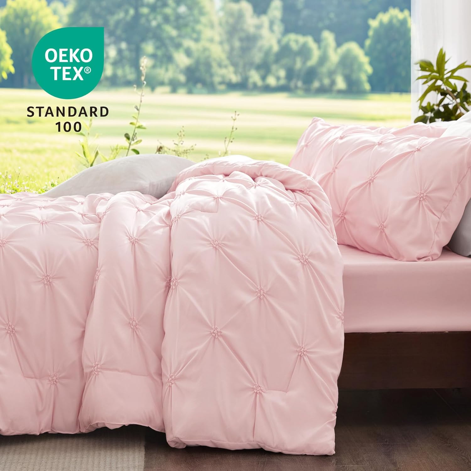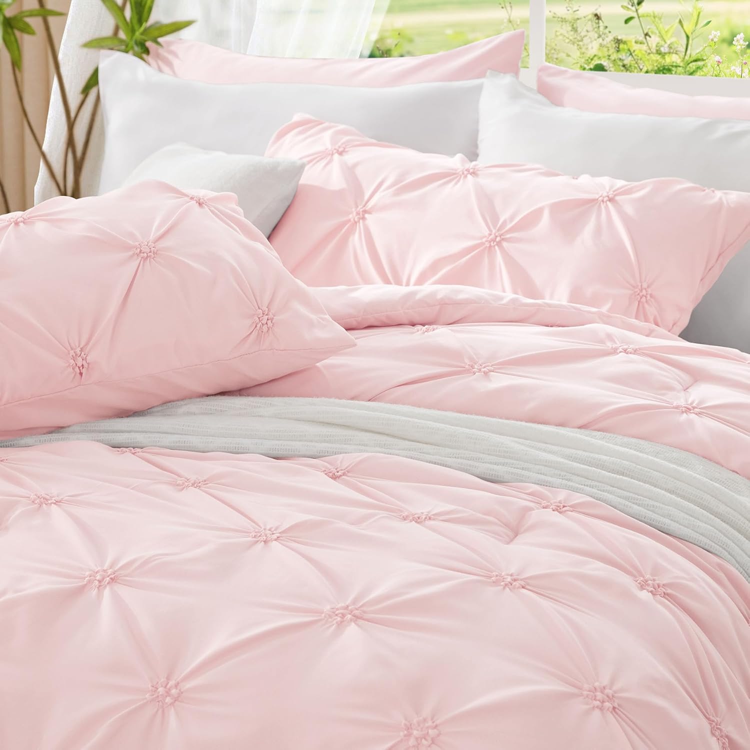 【What you may get】:This queen measurement comforter units contains 1 Comforter 88″x88″, and a couple of pillowcases 20″*26″. The white comforter is vacuum sealed, which can lead to wrinkles and compression. It is strongly recommended to wash the comforter earlier than the primary use and both tumble dry on low warmth or air it out within the solar to revive its plushness and the great thing about its pinch pleat design.