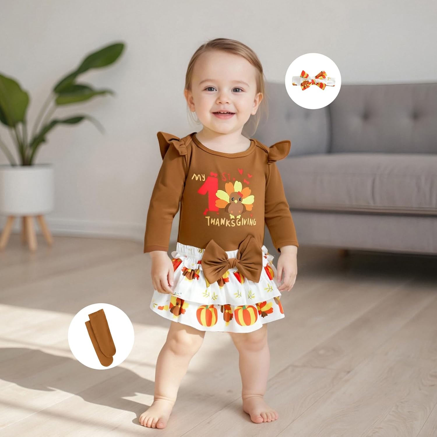 New child Child Woman Mardi Gras Outfit 1st Letter Lengthy Sleeve Romper+Tutu Skirts + Leg Heaters + Headband 4Pcs Garments