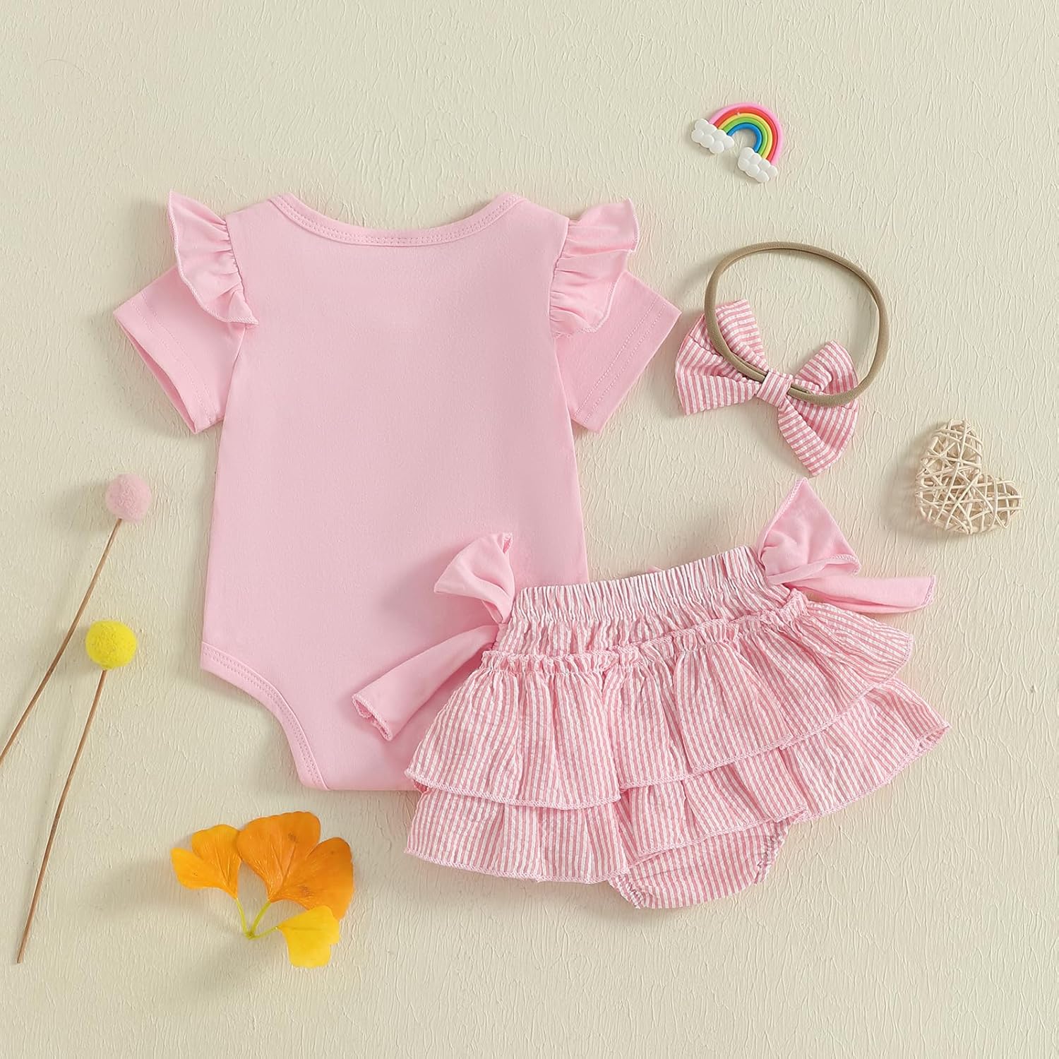 New child Child Women Garments Summer season Daddys Woman Outfit Ruffle Romper Bow Tutu Shorts Heaband 3Pcs Woman Outfits