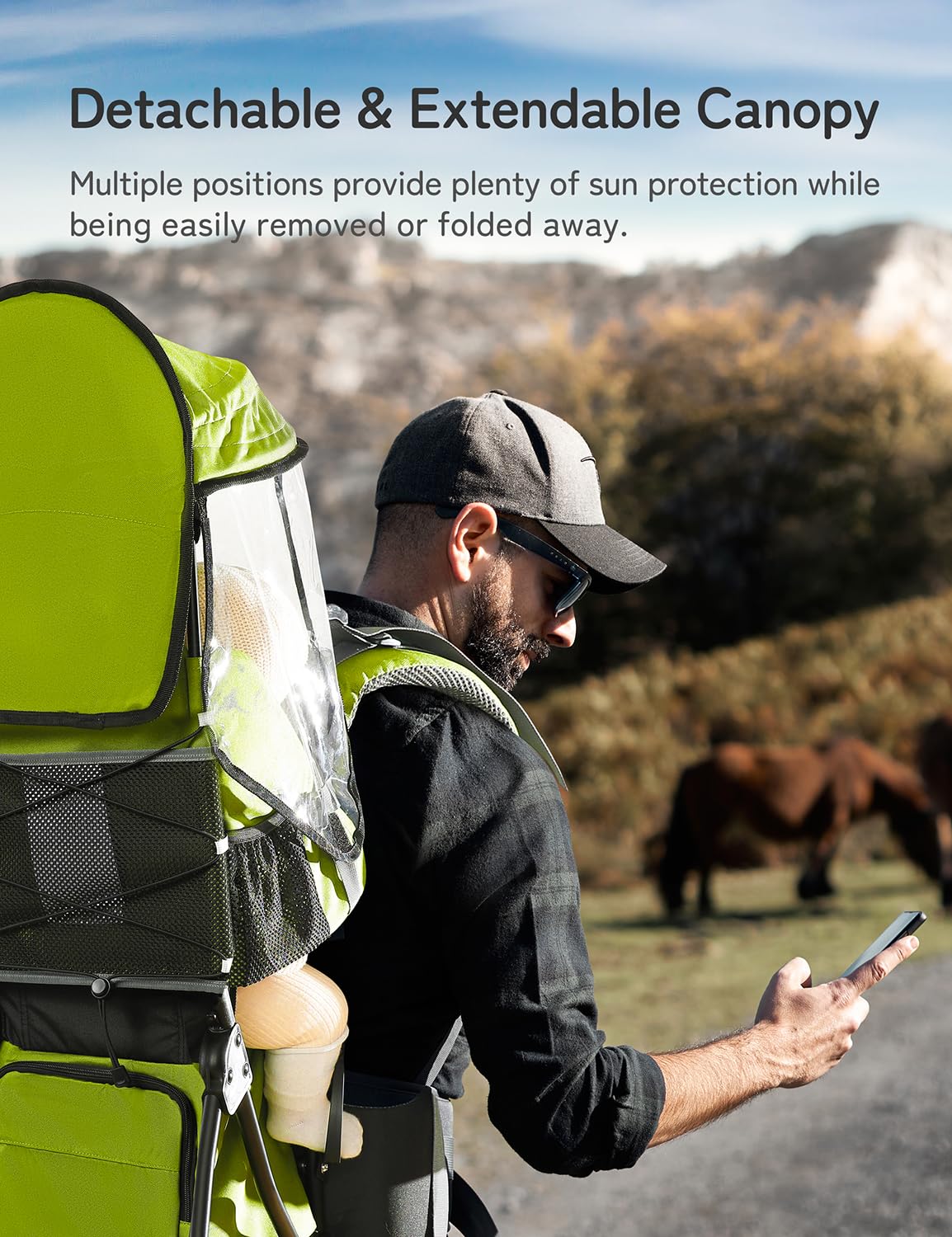 besrey Baby Backpack Carrier, Toddler Hiking Backpack with Safety 3-Height Seat, Adjustable Straps&Waist Belt, Foldable Frame Lightweight Large Capacity Child Carrier for Hiking (Green)