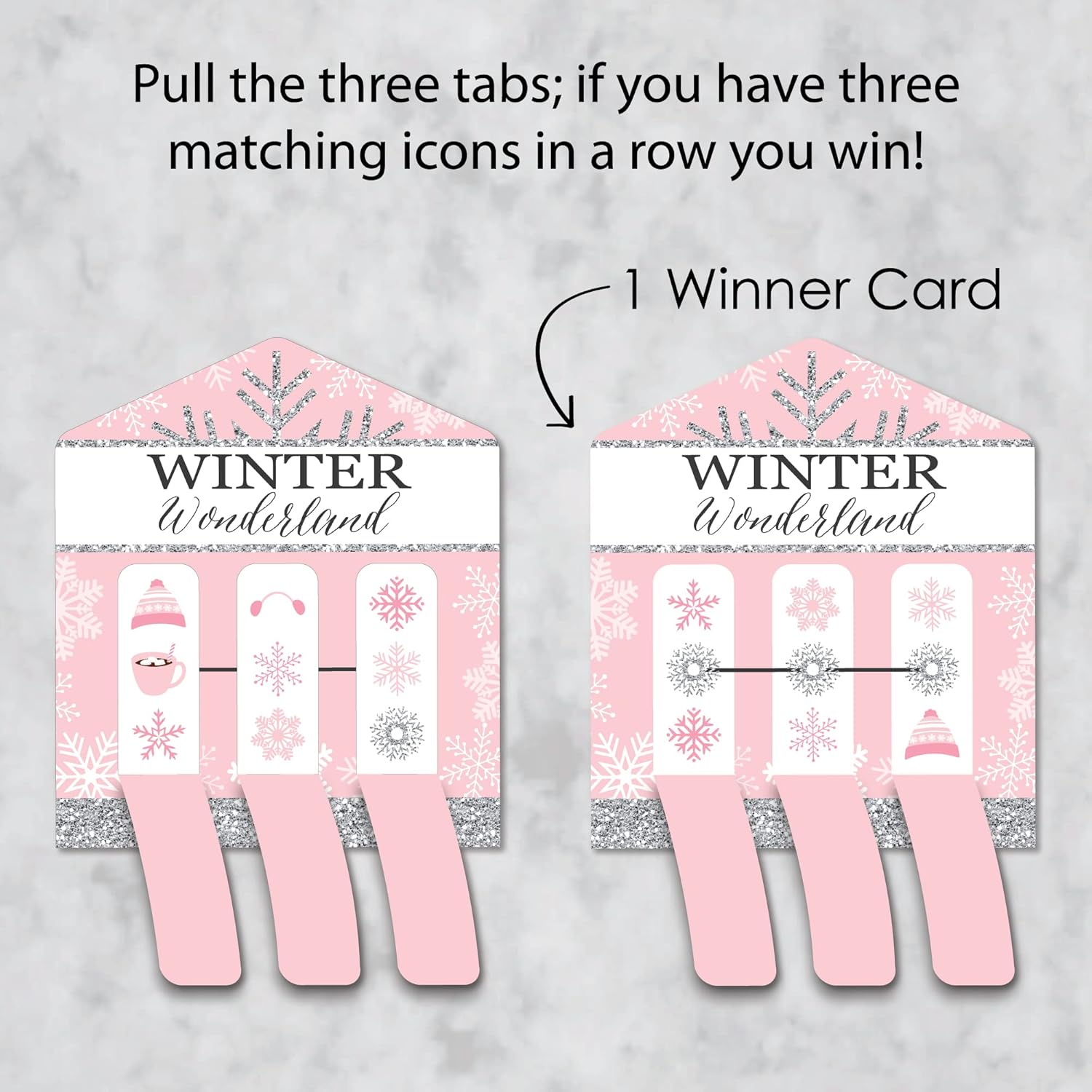 Pink Winter Wonderland Pull Tabs 3-in-a-Row INCLUDES 12 pull tab sport playing cards with 1 successful card and 11 dropping playing cards. Nice for a Vacation Snowflake Child Bathe or Birthday celebration, these sport playing cards are for leisure functions solely.