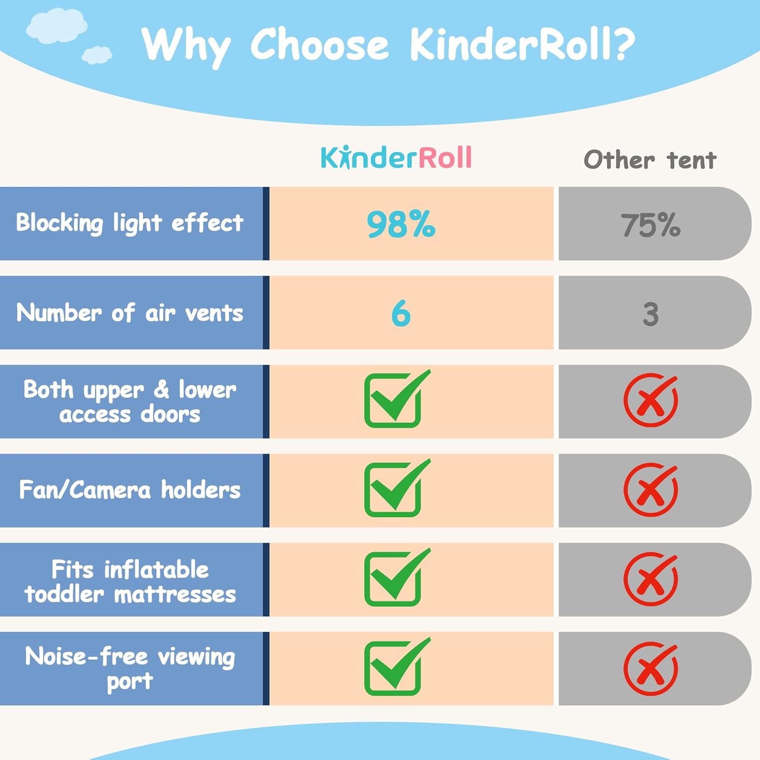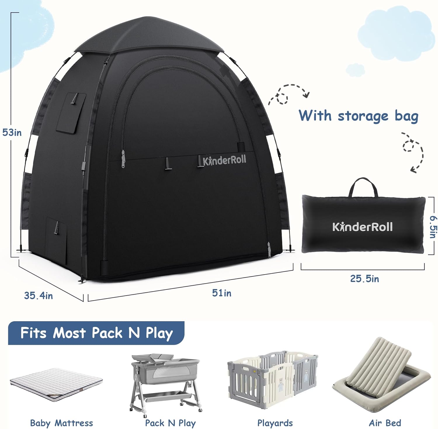 One Button Set Up: Conventional blackout tents are troublesome to put in and require a number of folks to help. KinderRoll Blackout Sleep Tent takes the trouble out of the method, merely unfold the tent and press the highest fixture down gently, setup is full in 10 seconds. Assembled Measurement: 51″L x 35.4″W x 53″H. Light-weight and collapsible design is simple to retailer and carry, and comes with a carry bag, good for visiting household or touring.