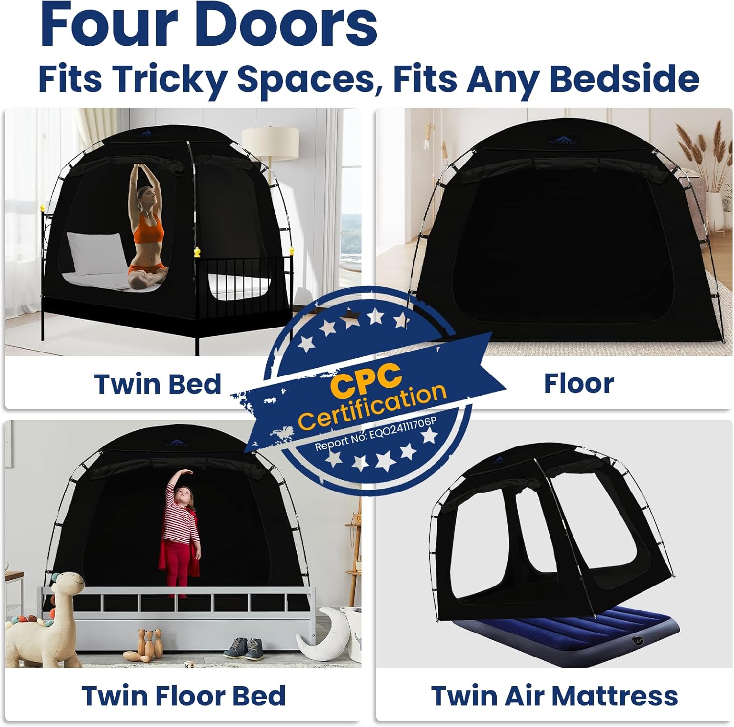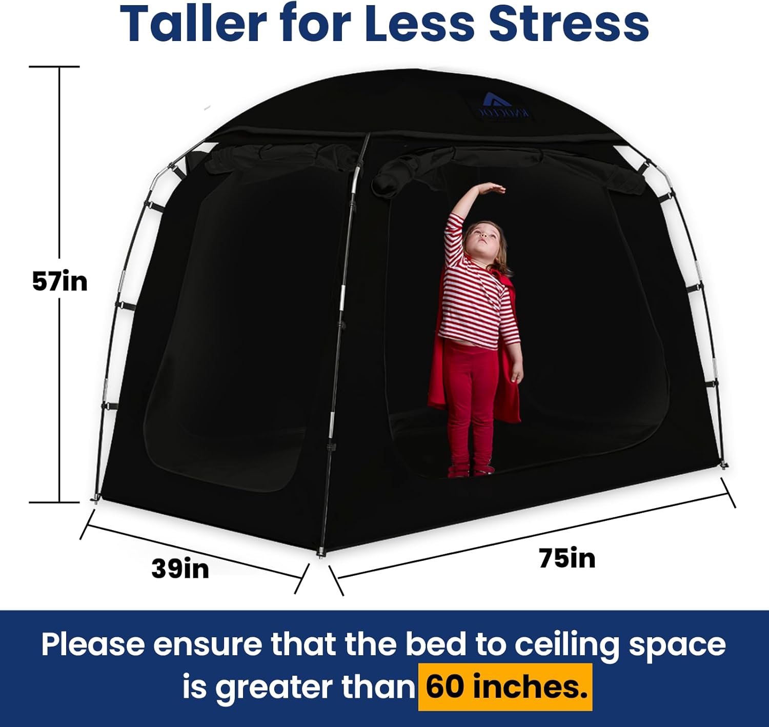【AUTHENTIC BLACKOUT BED TENT】Specialised blackout cloth creates a darkish, calming area that blocks 99% of sunshine, making certain optimum privateness and sensory consolation. Ultimate for daytime sleepers, night time shift employees, and households managing autism, nervousness, or sleep points. Ultimate for toddlers, youngsters, and adults in search of a serene retreat