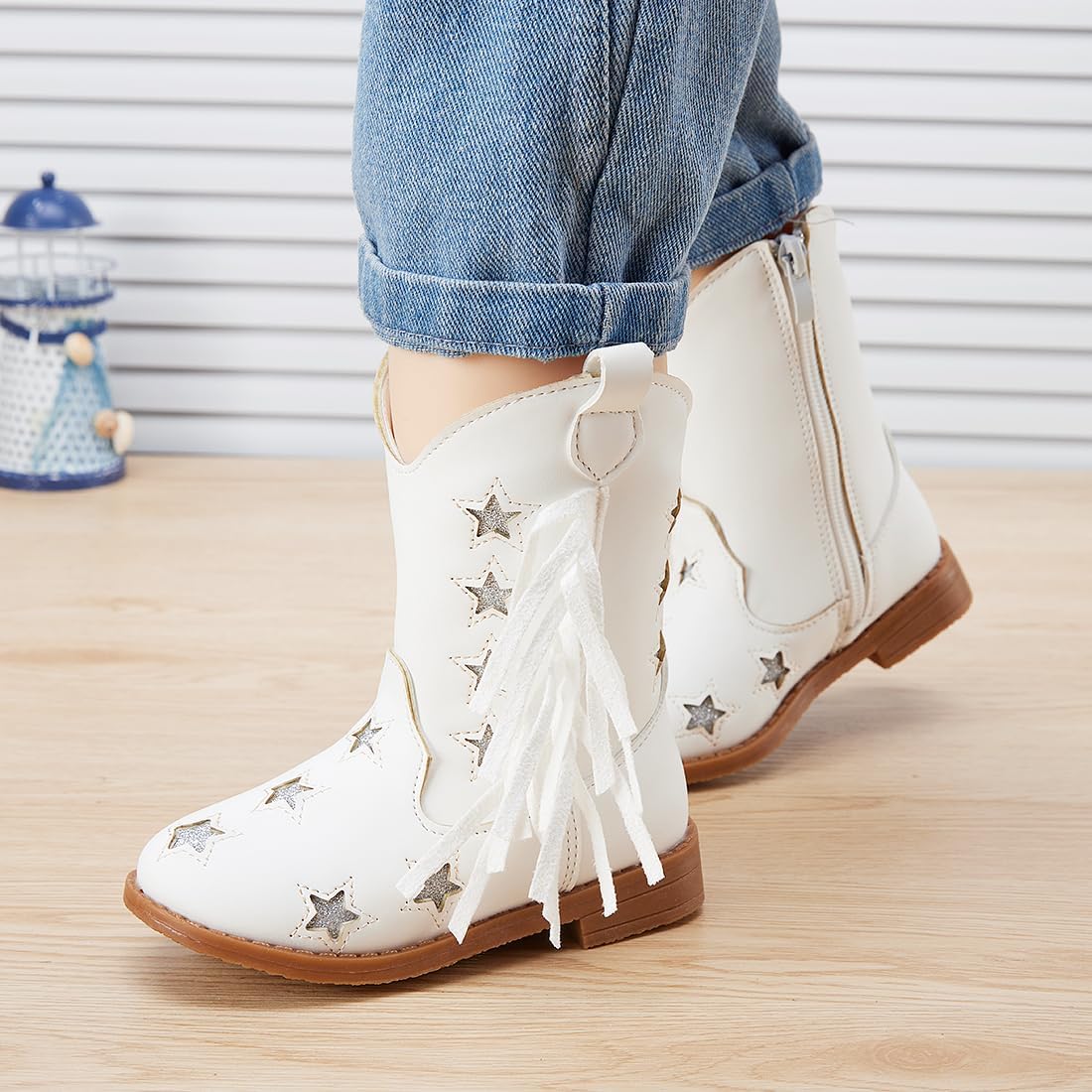 Toddler Ladies Cowgirl Boots Little Youngsters Mid Calf Western Cowboy Pointed Toe Using Footwear Tassels Glitter