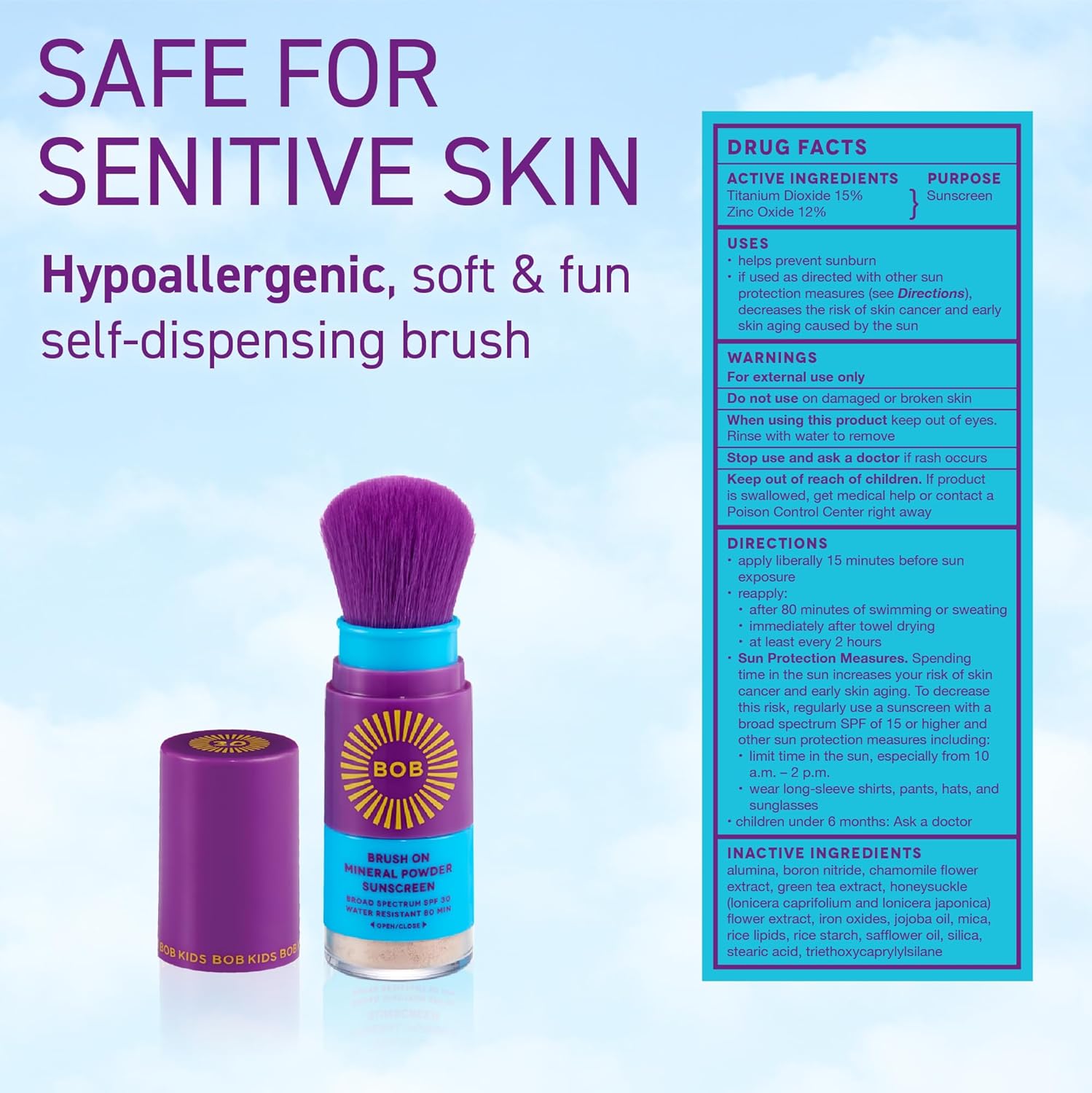 Problem Free Youngsters Sunscreen: BOB KIDS Spray + Powder Pack comes with a SPF 30 mineral powder sunscreen brush & SPF 50 mineral Solar Spray; Designed to use to infants, toddlers & different youngsters