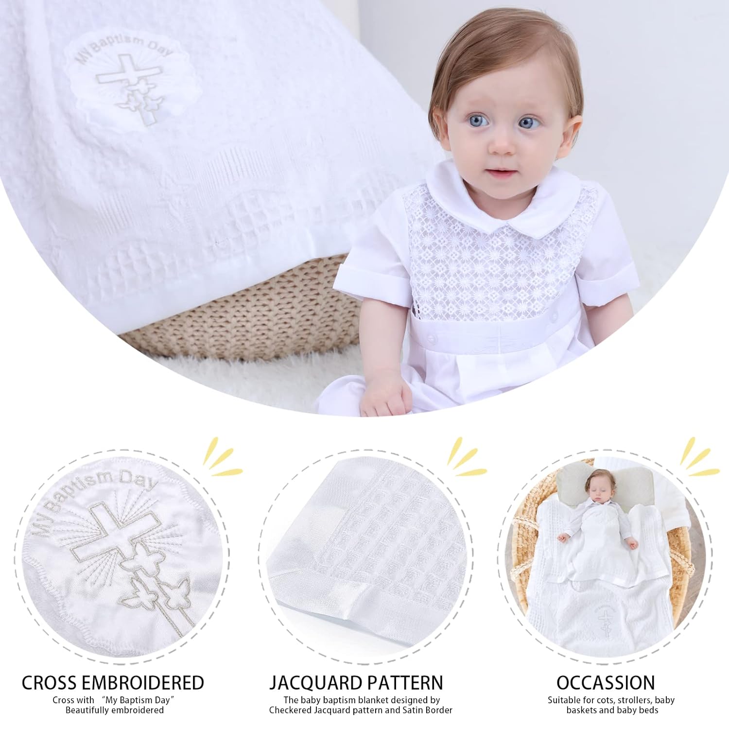 New child blanket inscriptions cross and“My Baptism Day” Fantastically embroidery,an ideal souvenir from a godparent or relative- considered one of a form spiritual baptism presents for boys women to recollect the special day.Baptism blanket is a singular child presents that can be treasured for a lifetime.