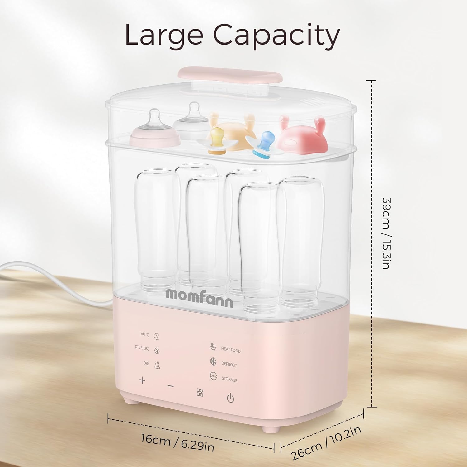 Designed with a totally computerized operation and LED countdown show, the Momcozy bottle sterilizer is straightforward to make use of and ensures exact and protected sterilization. Its spacious design permits for the sterilization of as much as 8 bottles without delay.