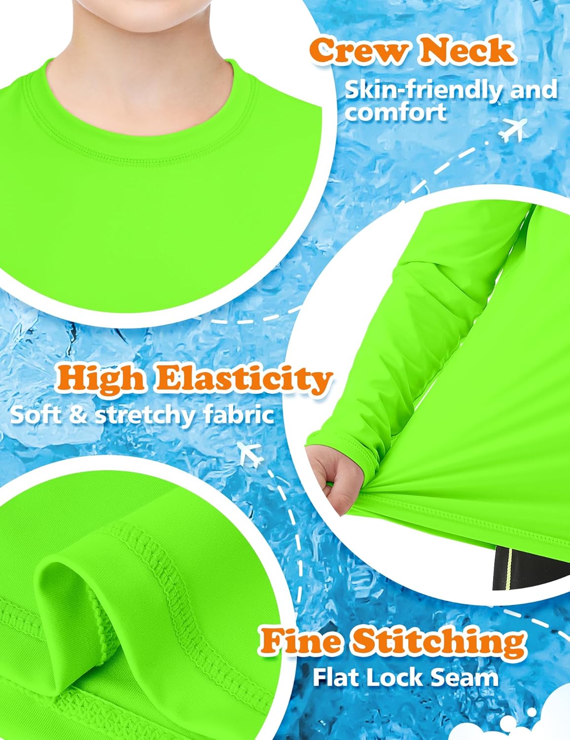 Boys Rash Guard Swim Shirt UPF 50+ Sun Shirts Long Sleeve Swimwear Quick Dry Fit Fishing Water Tshirts for Kids Youth 2T-16Y