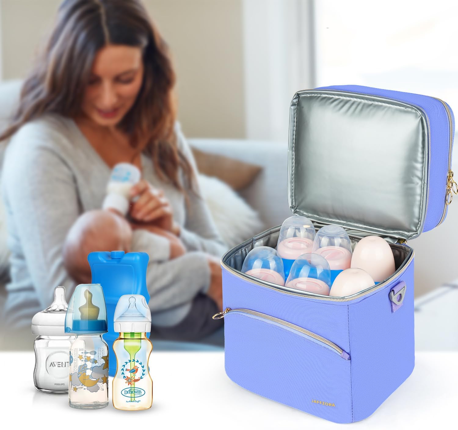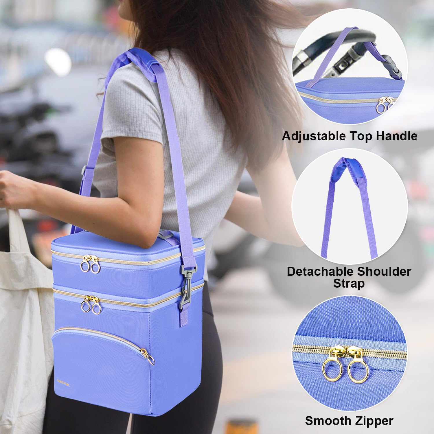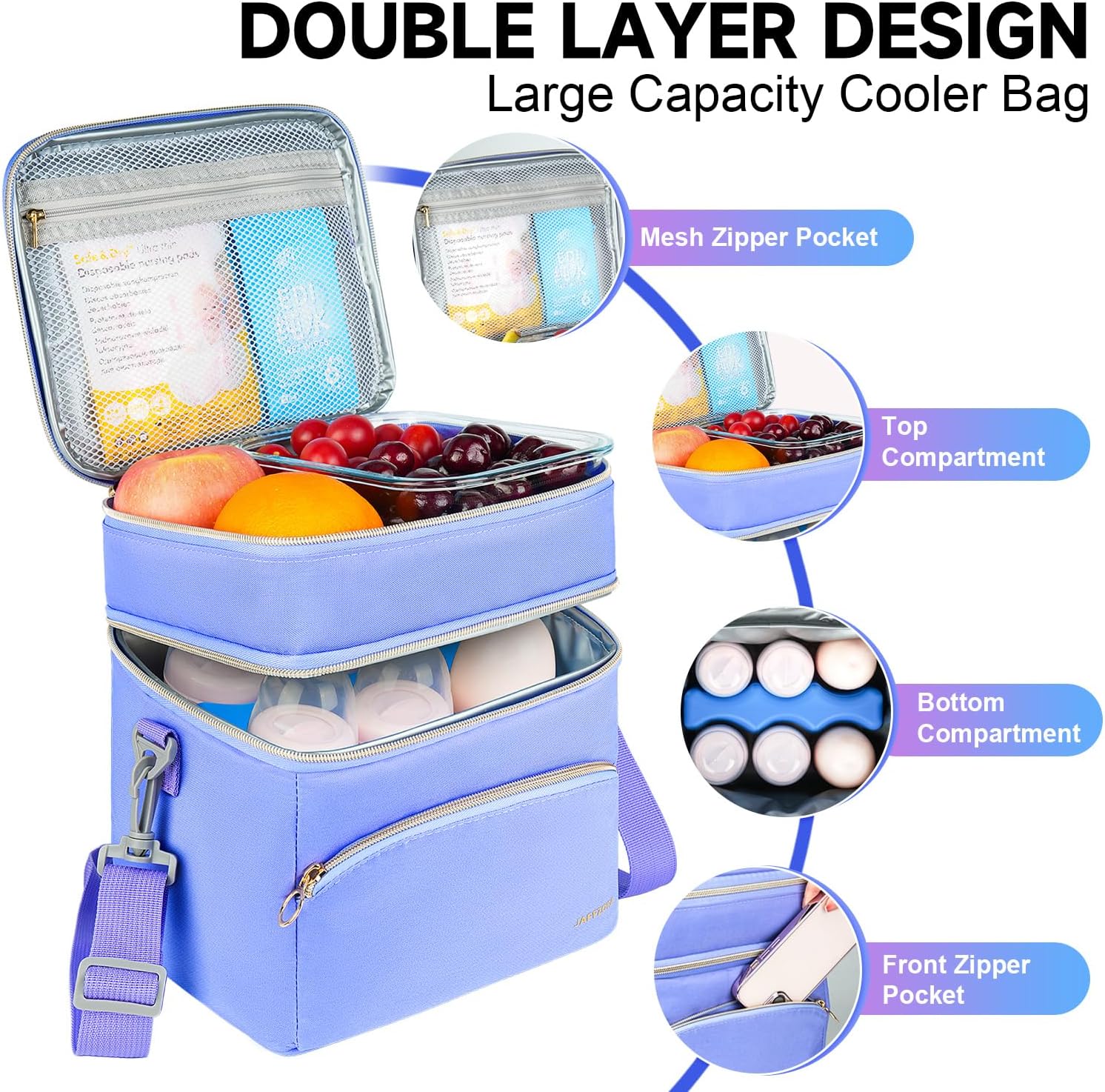 DUAL INSULATED STORAGE: The highest and backside compartment is manufactured from insulated supplies, successfully conserving breast milk, drinks, fruits or child meals contemporary for hours. The breast cooler bag comes with an ice pack.