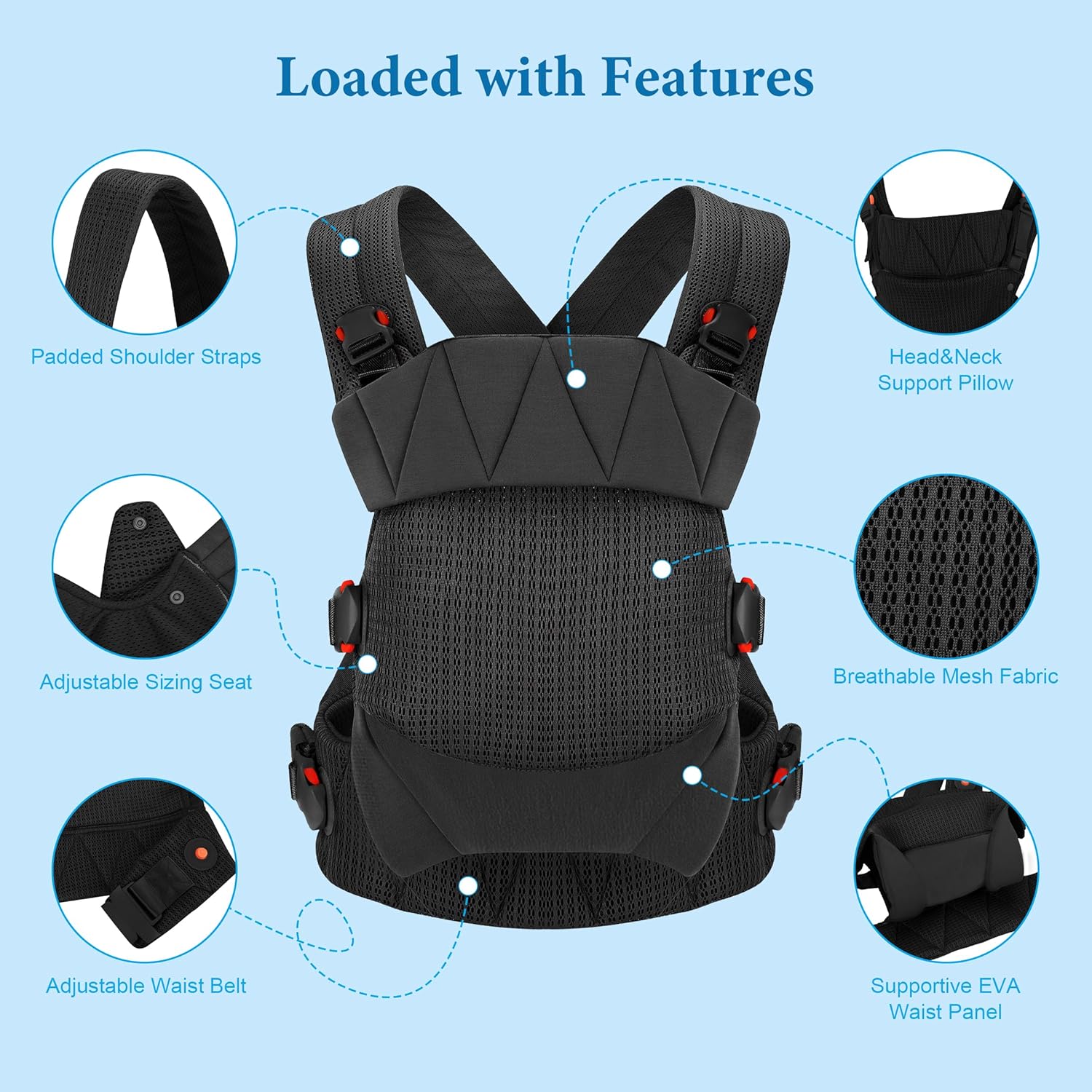 A number of Carrying Choices: Helps three carrying modes—front-inward, front-outward, and back-carry—permitting you to simply change as your child grows.Assist for Newborns to Toddlers Carriers (7-45 lbs), Fast-adjust shoulder straps and a user-friendly design adapt to your physique form and life-style