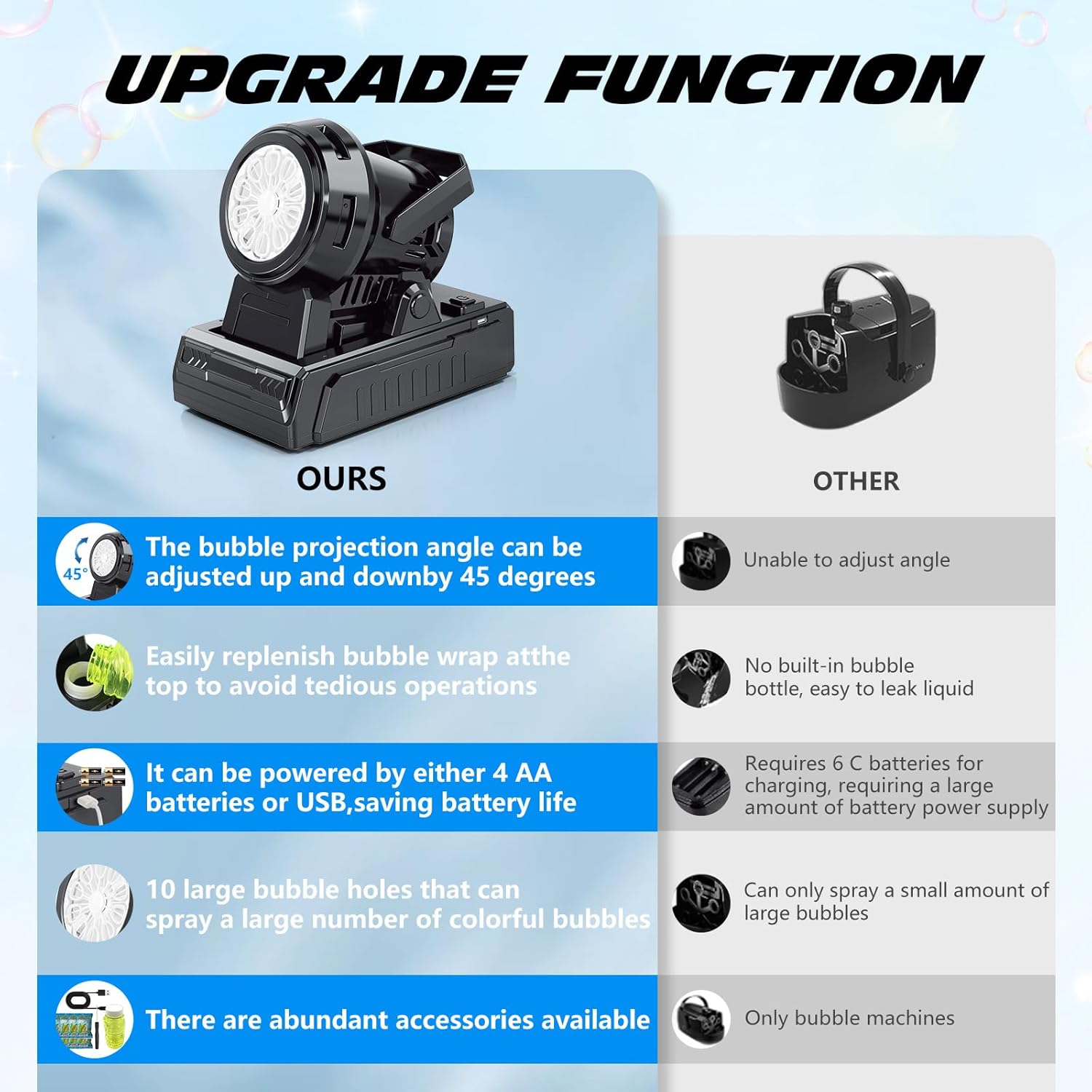 Twin Energy Choices for Anytime Use: Energy your bubble maker the best way you need—both plug it into an influence supply or use 4 AA batteries (not included) once you’re on the go. This flexibility makes it excellent for each indoor and outside use at events, parks, and picnics.