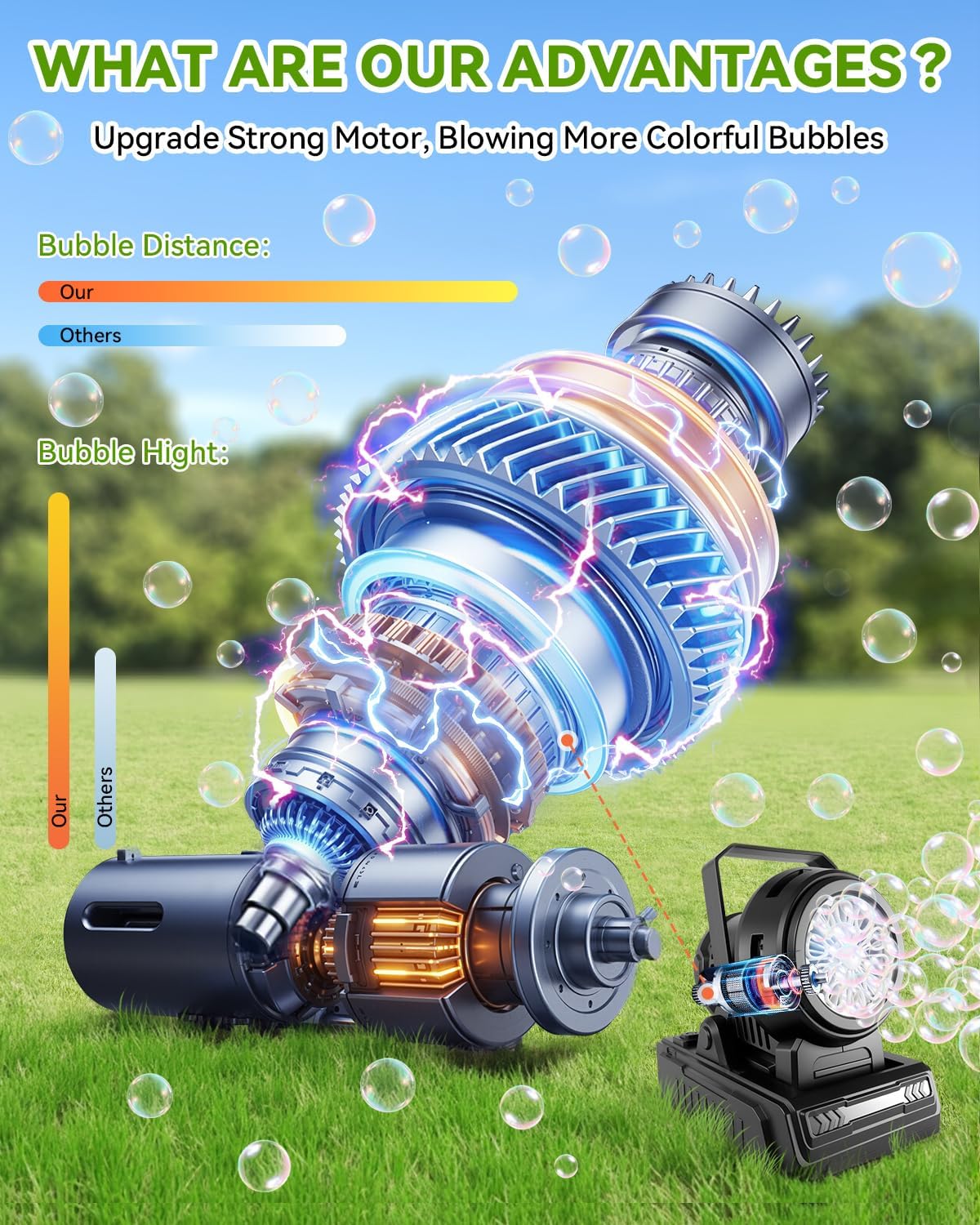 【PORTABLE FOR INDOOR OUTDOOR USE】Our Bubble Machine gives three versatile working modes: it may be powered by batteries(batteries is comprise), an influence financial institution, or a charging cable(Usb cable is comprise). This flexibility supplies nice convinience for you, permitting it for use each indoors and open air.