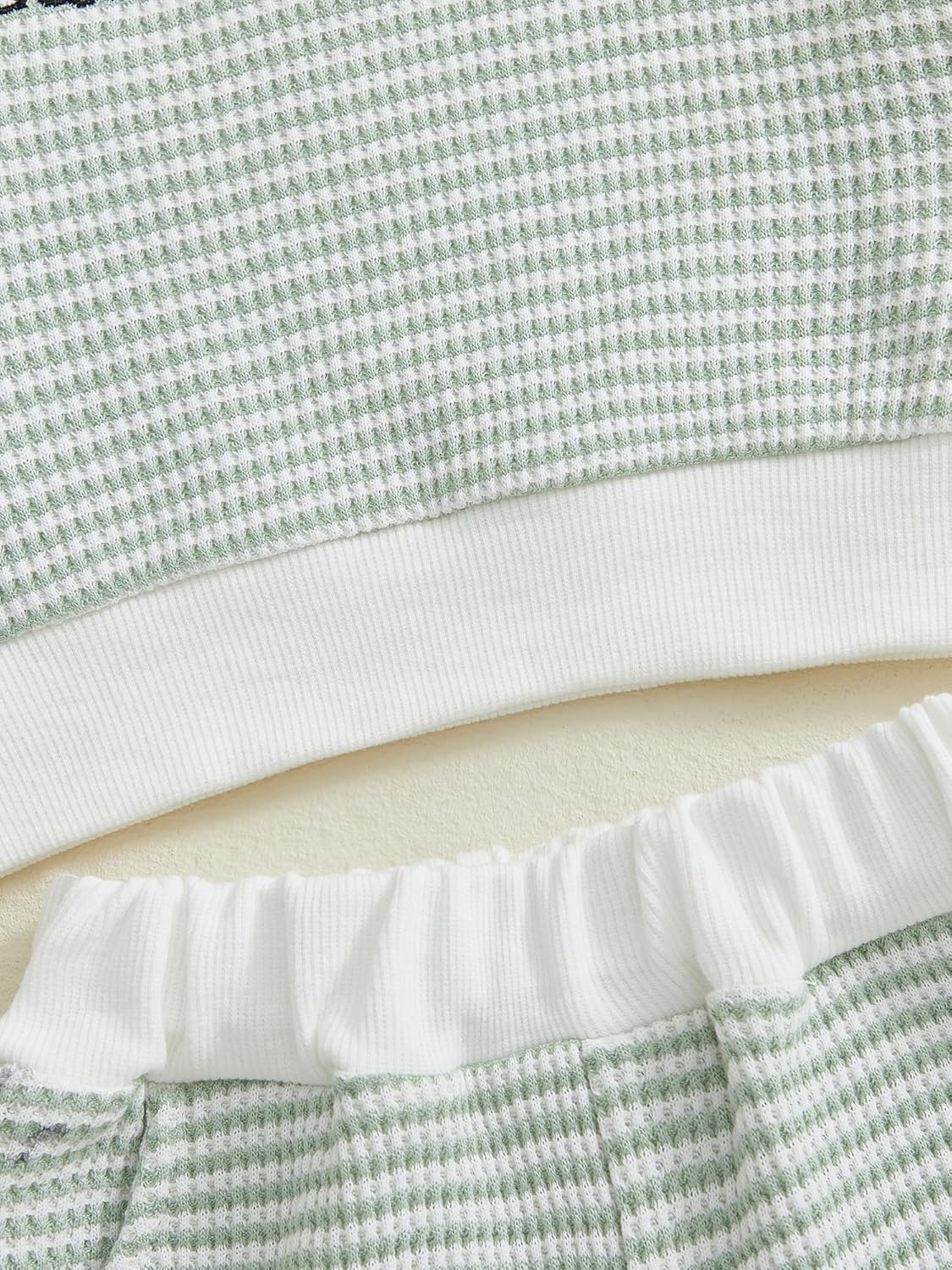 Boys Autumn 2Pcs Pants Units Lengthy Sleeve O Neck Animal Embroidery Tops Striped Pants
