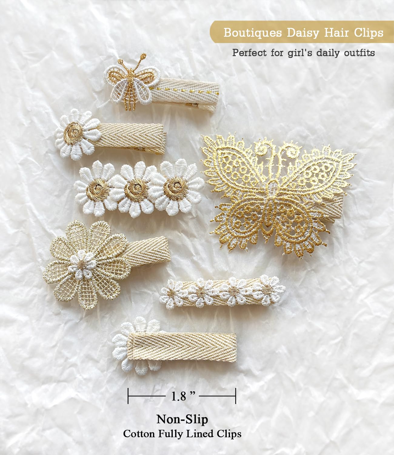 ♥ HIGH QUALITY: Our daisy and butterfly hair clips for ladies, made of top of the range golden embroidered lace, cotton ribbons and steel alligator clips. The floor of clips are flat and won’t harm child women’ advantageous hair. Every child hair clip is handmade by skilled and expert employees.