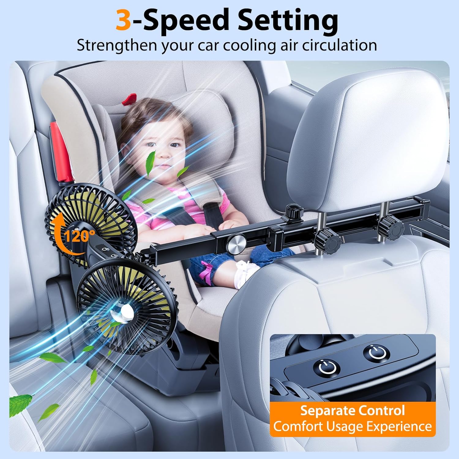 Slidable Extension Arm: xuenair adjustable automotive backseat fan has upgraded the rotatable extension arm to slidable, which enormously improves the consumer expertise of airflow orientation