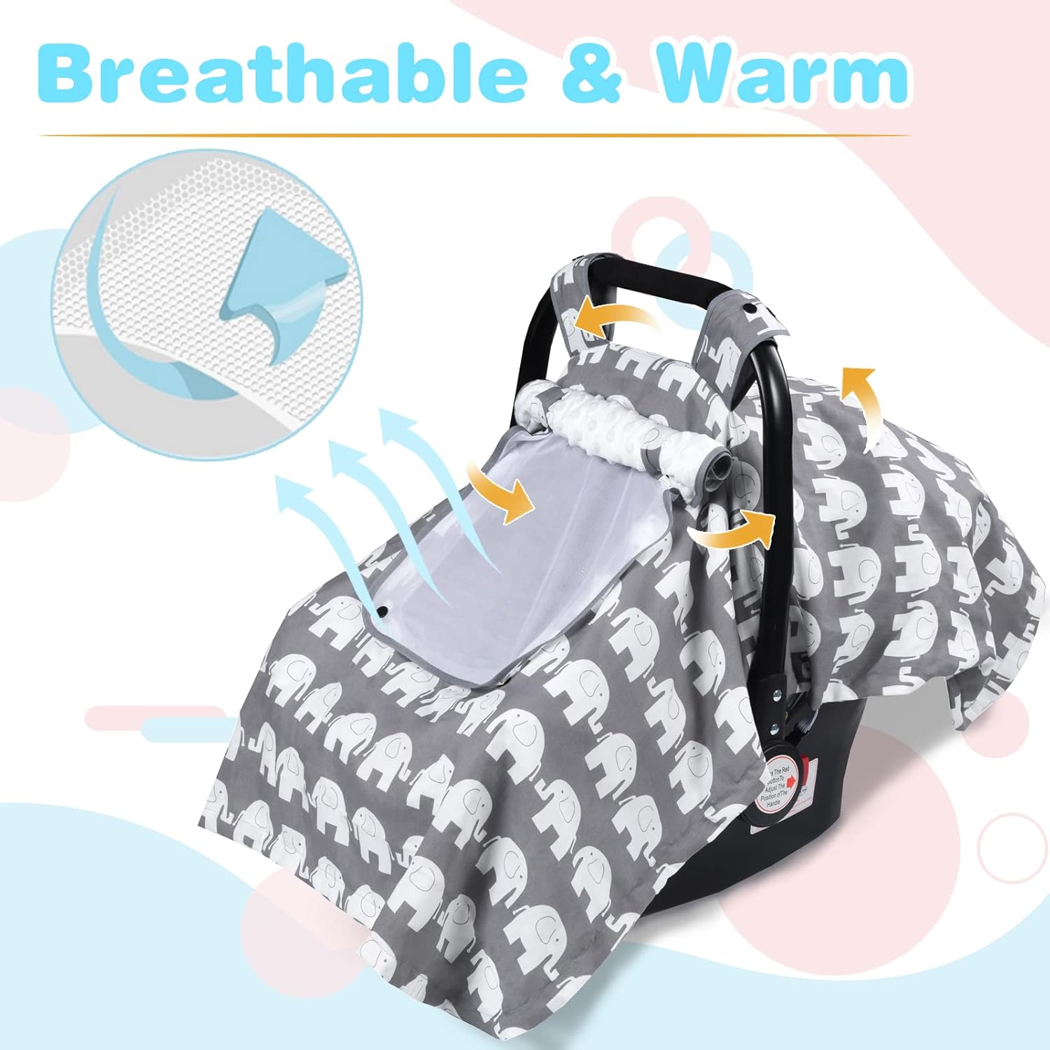 [PREMIUM COTTON] – The automobile seat cowl for infants is product of 100% cotton materials, and minky, excellent light-weight but breathable materials.