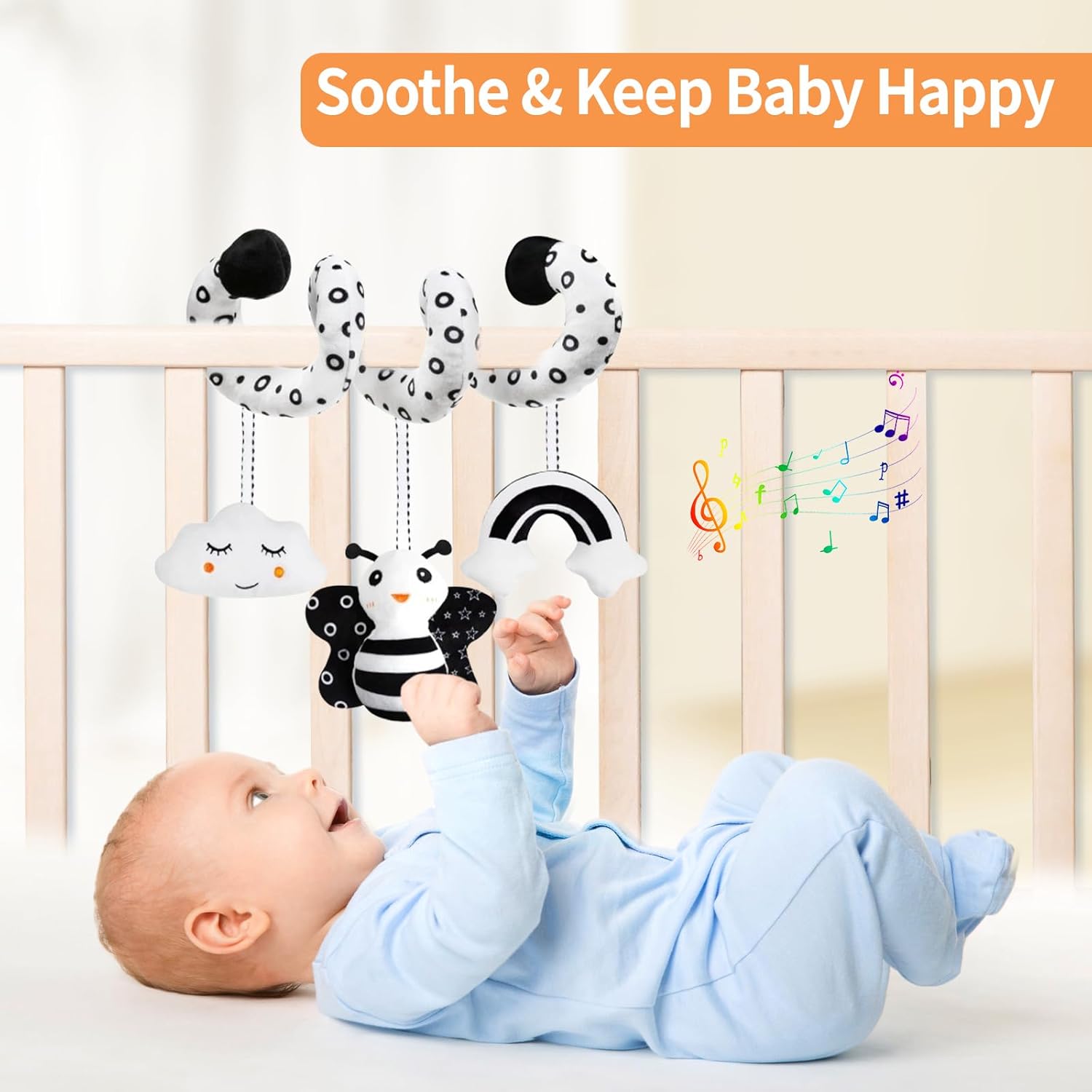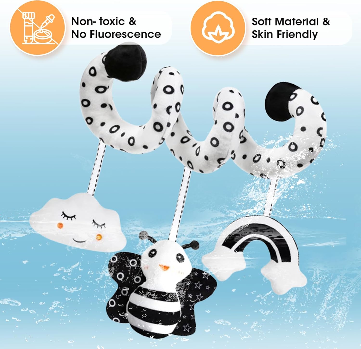 【Security Toddler Toy】Our stroller toys for infants have handed CPSIA & ASTM F963 certification within the US. It is BPA FREE and pleasant for infants to reaching, pulling, batting, grabbing, squeezing safely.