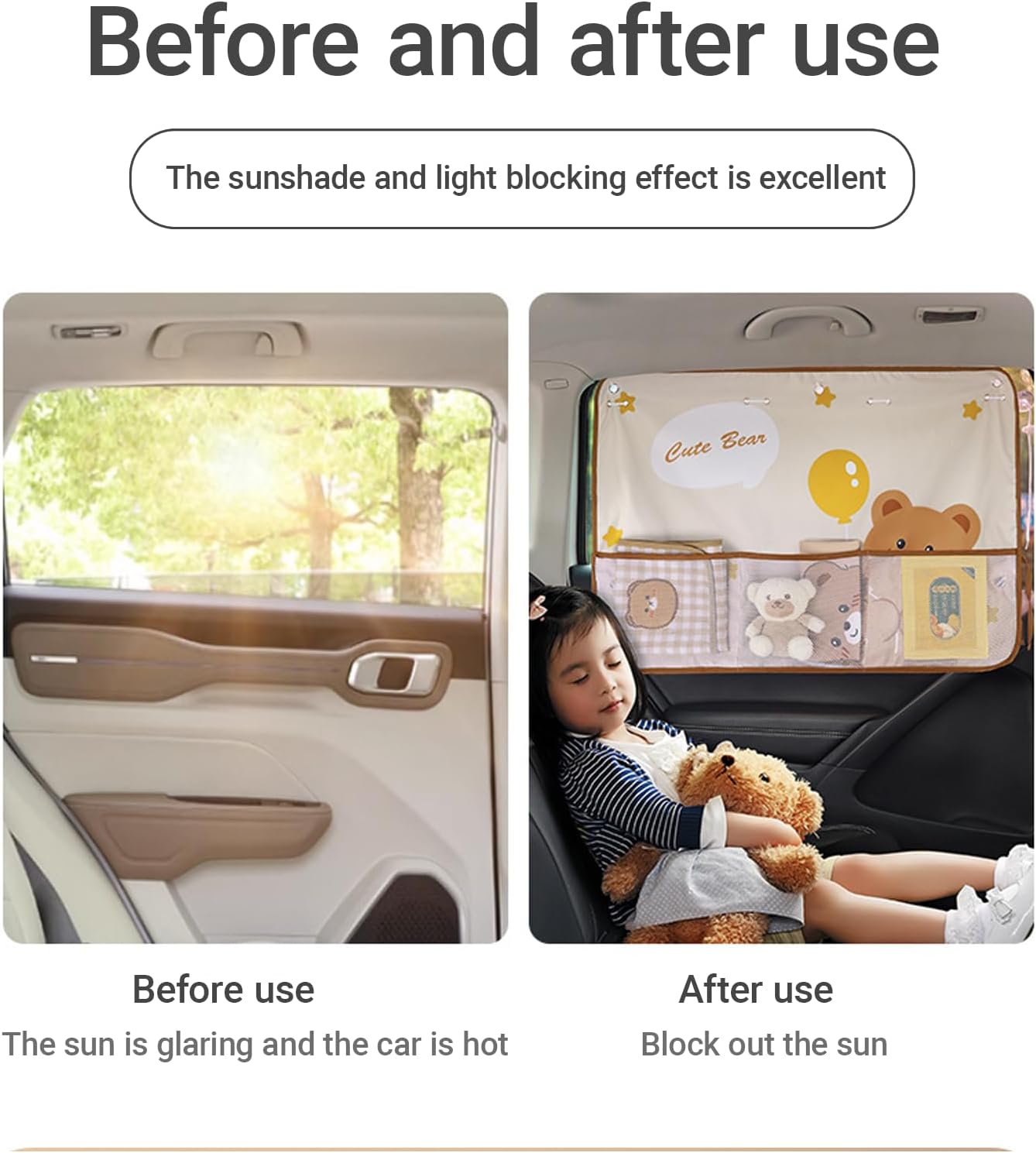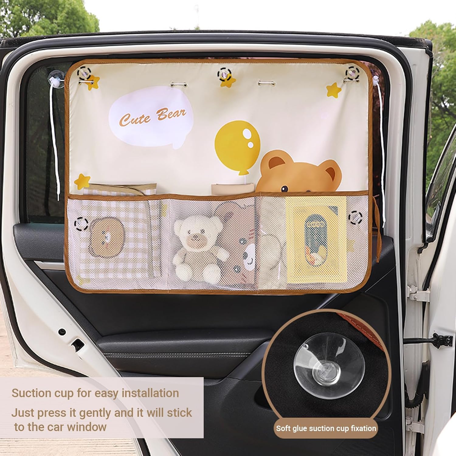 Automotive Solar Shade for Window Child, 2 Pack Full Shade Automotive Window Shades with Storage Internet Pocket with Suction Cups, Balloon Bear Automotive Window Curtain Protector from Solar Glare Warmth Blocks UV Rays