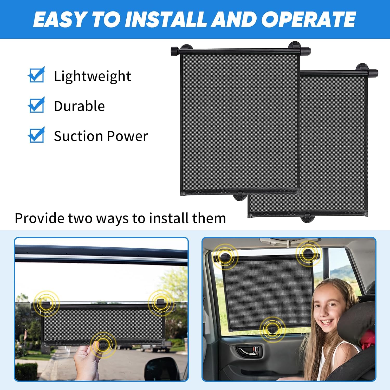 【Straightforward to Use】 The auto-retractable design permits automobile window shades to put in and fold in seconds. The safe automobile solar shade comes with 6 rubber suction cups to securely connect it to your window. Compact design makes it’s straightforward to fold and carry.