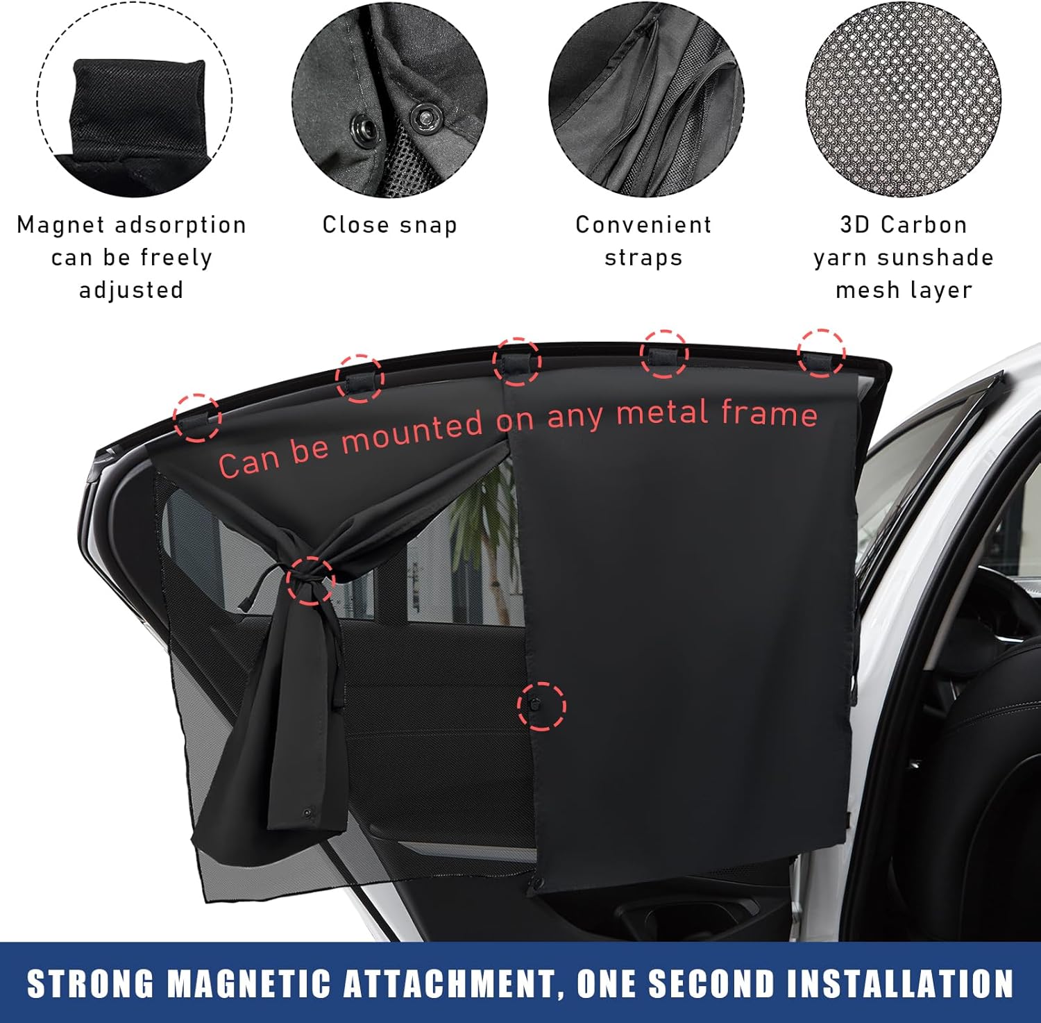 Car Window Shade, Magnetic Double Layer Auto Side Windows Sun Shade for Heat/UV Protection, Vehicle Privacy Window Curtain for Baby & Kids, Universal Car Accessories (2 PCS)