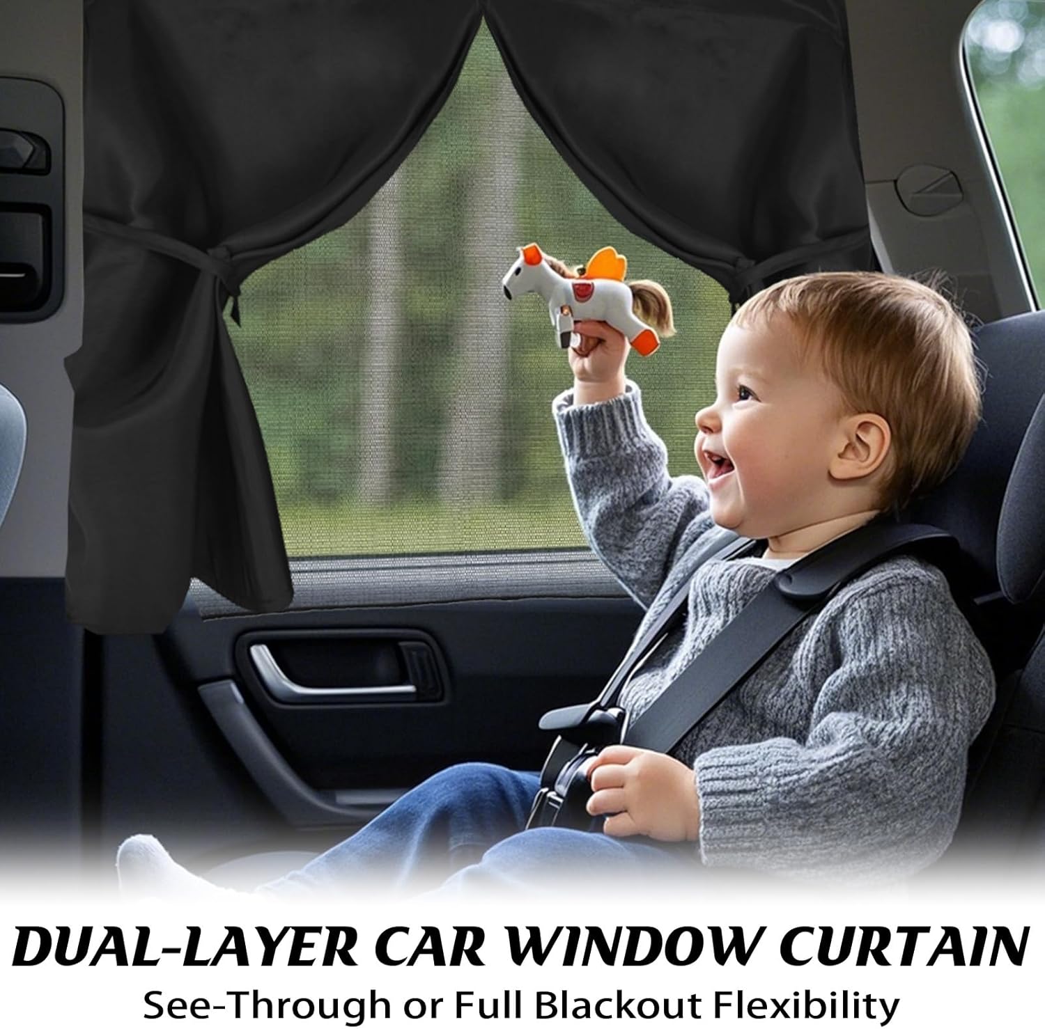 Splendid for Highway Journeys and Journey Consolation: Our double-layered automobile shades for again home windows child are perfect for your street journeys. Once you wish to benefit from the view outdoors, merely roll up the blackout layer and tie it with the built-in rope. The remaining semi-transparent material nonetheless blocks some daylight and UV rays, whereas permitting you to see clearly with none glare. It is the right addition to your child journey gear, providing consolation and safety for each you and your baby.