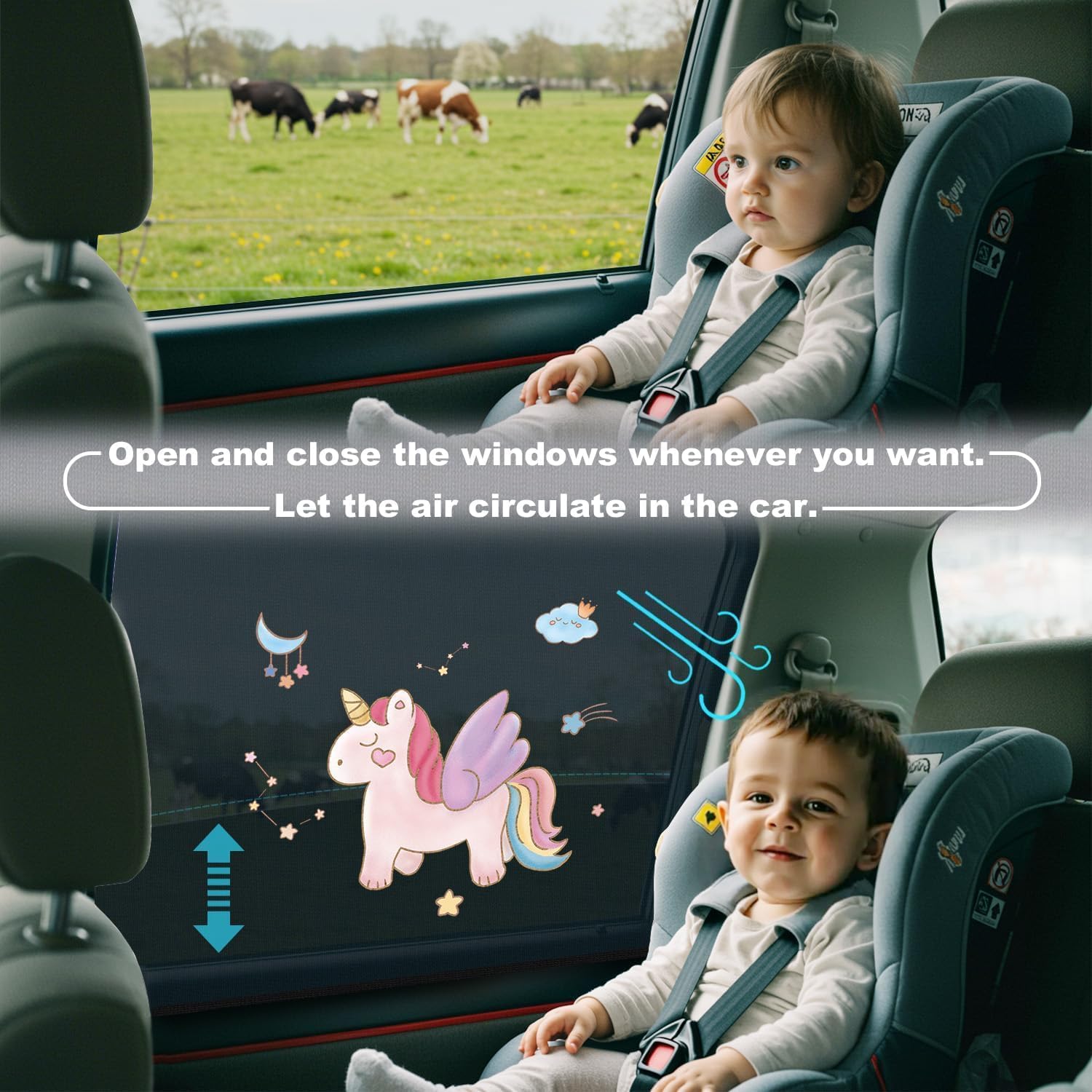 Lovable Design: Boasting wonderful resilience, automobile window shades will be stretched as wanted. That includes a cute unicorn sample on one aspect and strong black on the opposite, you’ll be able to select which aspect faces in or out. Children are positive to like them