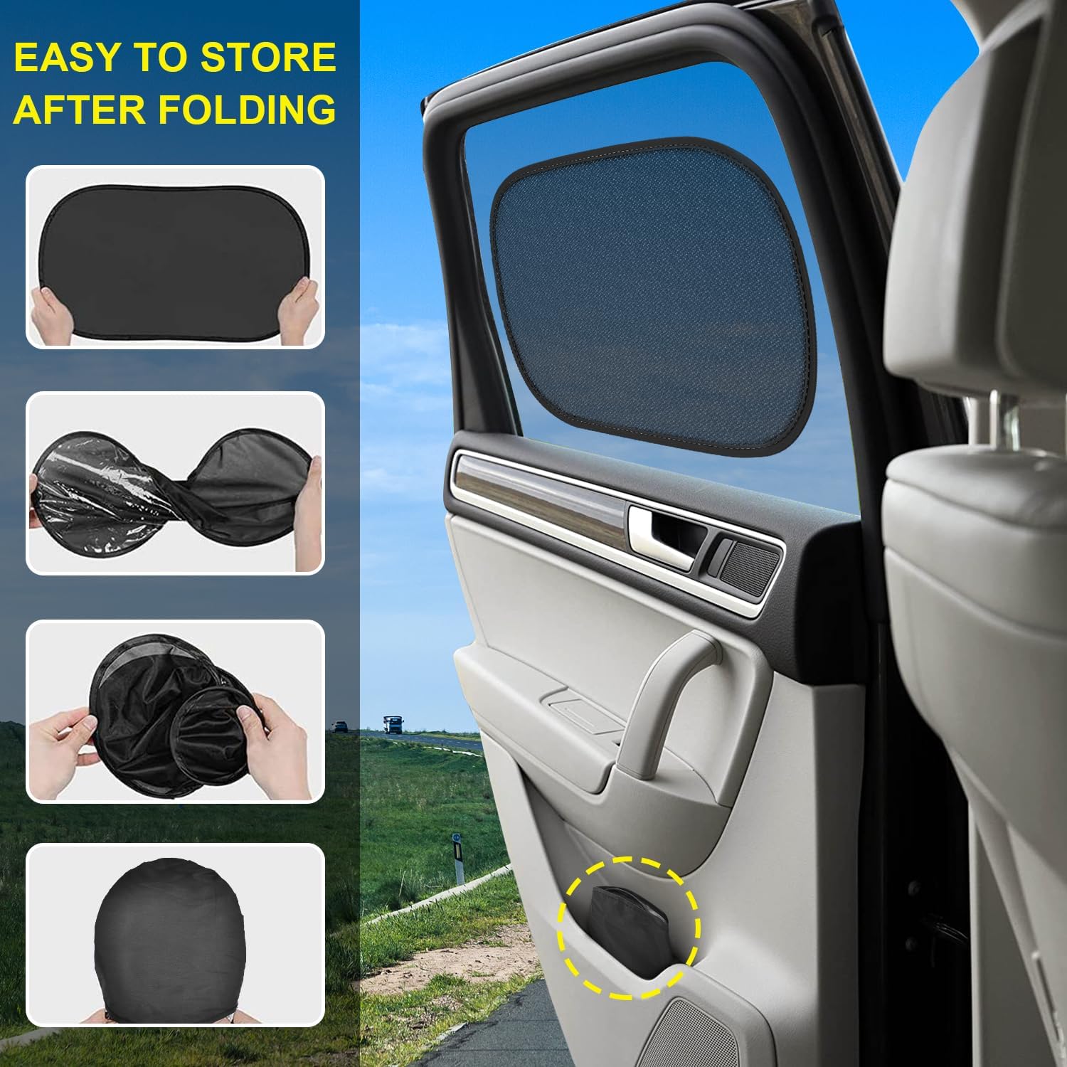 ✅Static Cling Expertise: Product of 80GSM nylon mesh, 15s static movie and metal body. The foldable design appropriate for on a regular basis use, if you wish to journey by bus or practice, you merely put the automobile sunglasses for teenagers within the storage bag and take it with you.