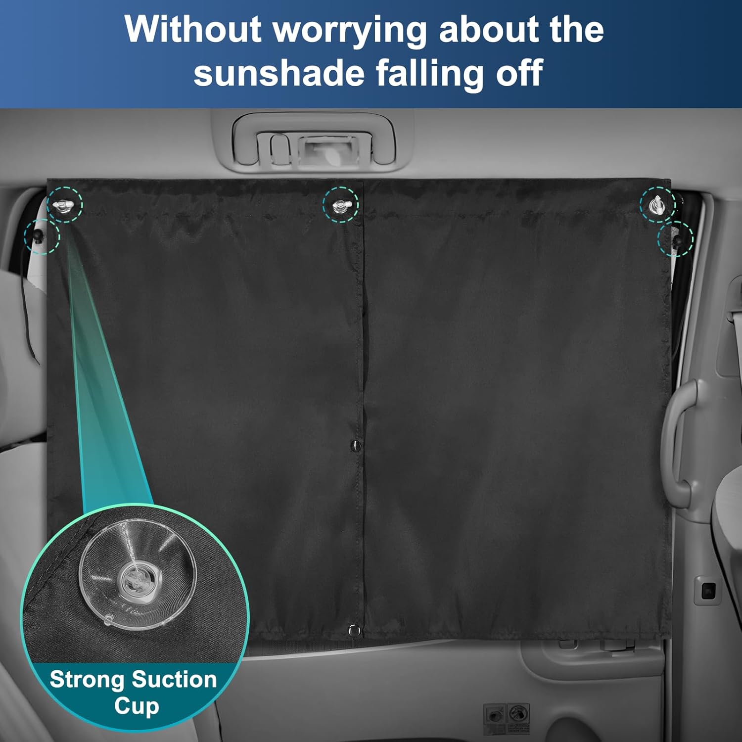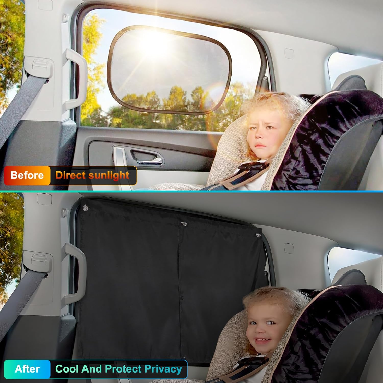 Shade and Solar Safety: The black automotive curtains for home windows can fully cowl either side of the again seat, offering you with all-around safety, blocking the skin daylight and warmth, and appearing as a blackout and sunscreen. Allow you to relaxation within the again with peace of thoughts and really feel the coolness of the automotive. It’s perfect in your lengthy distance touring and tenting!