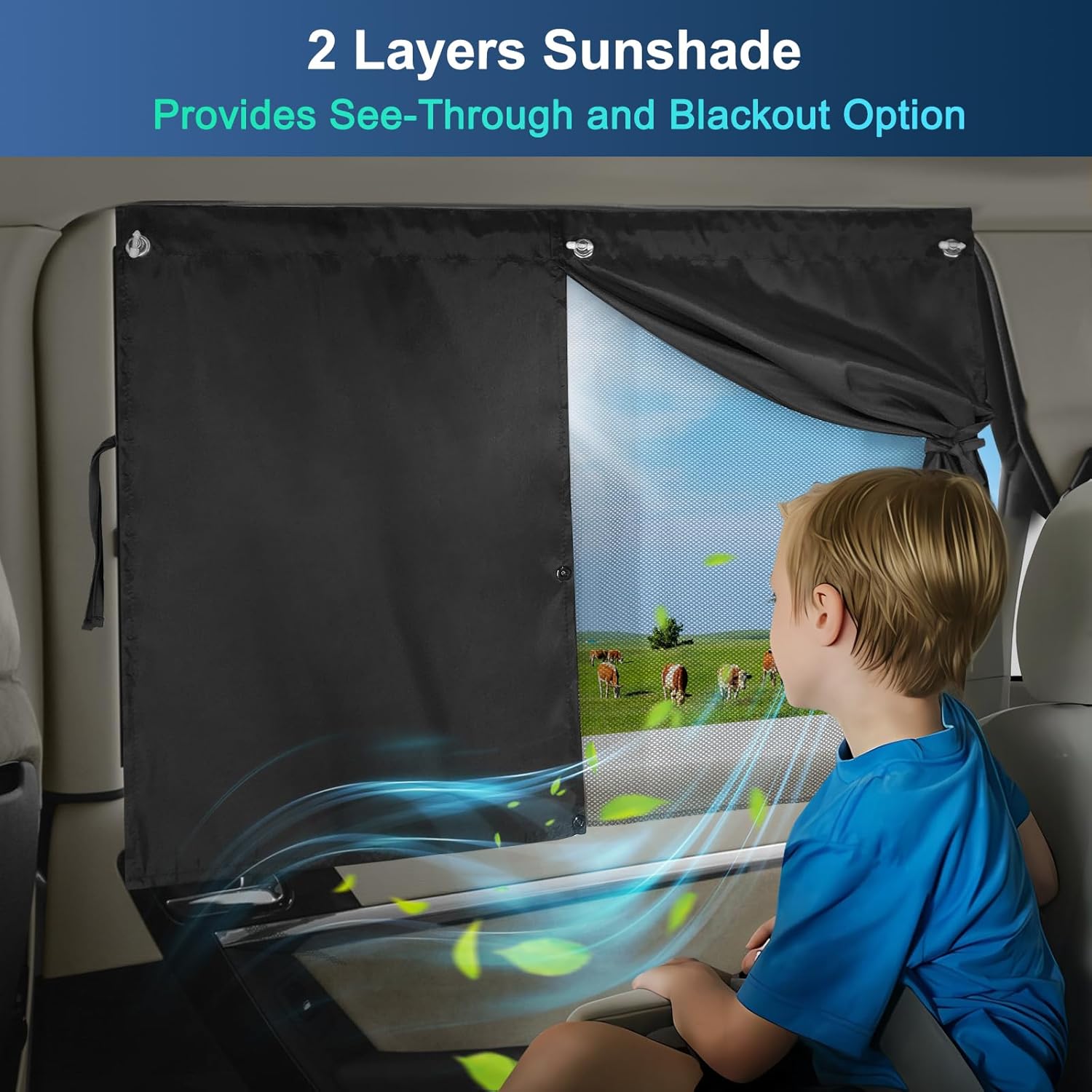 Designed for Journey: The sunshade is a double-layer design, if you wish to observe the surroundings outdoors the window, tie the complete blackout material with rope. Go away that semi-shading mesh material, which is able to block elements of solar glare and UV with out affecting your imaginative and prescient.