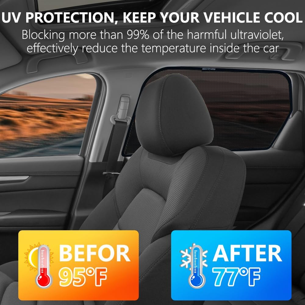 BWEN aspect window shades create a pleasant and personal area atmosphere for you. Moreover, they permit air to flow into freely contained in the automobile, so you will not really feel stuffy even after extended use, guaranteeing you may breathe recent air whereas within the automobile. Whether or not you take a nap within the automobile throughout an outside tenting journey, having fun with a peaceable afternoon, or just stress-free throughout day by day travels, BWEN automobile shades are an indispensable ultimate alternative, including a contact of consolation and ease to each journey.