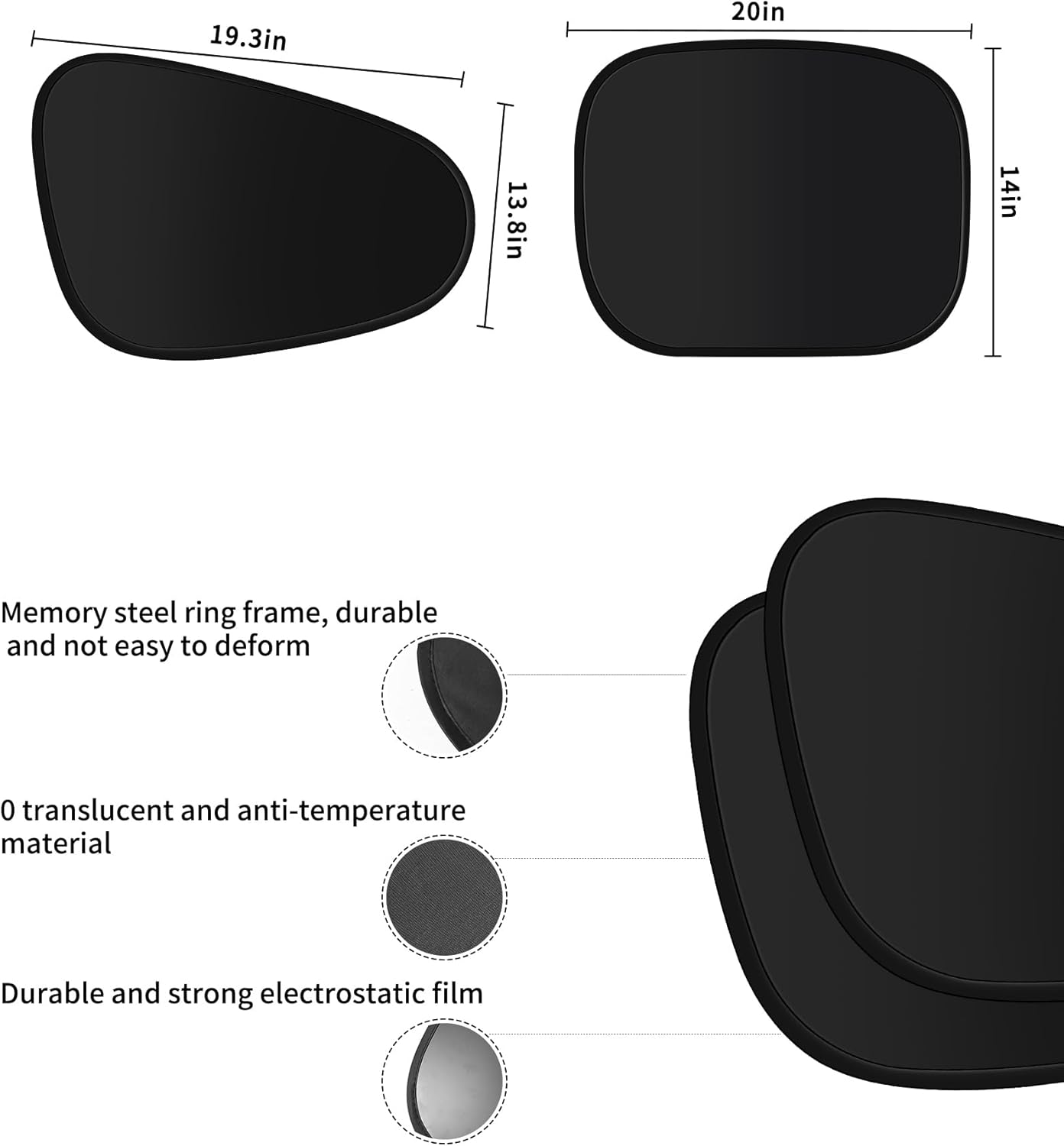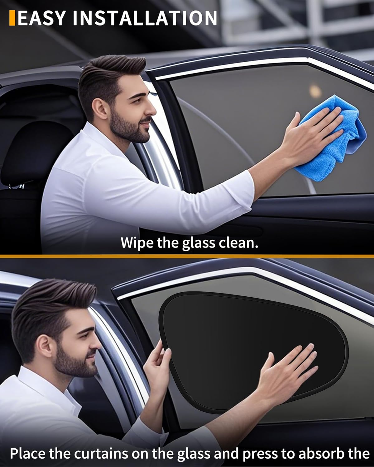 Static Cling Know-how – No Instruments Required: Our automotive window shades function a hassle-free static cling design for easy set up and elimination. No adhesives, suction cups, or additional instruments are wanted—merely press them onto the window for a safe maintain. The shades may be simply repositioned, eliminated with out residue, and reused throughout a number of automobiles. This progressive design ensures an ideal match for facet home windows of automobiles, SUVs, vans, and vans, making them a must have auto accent