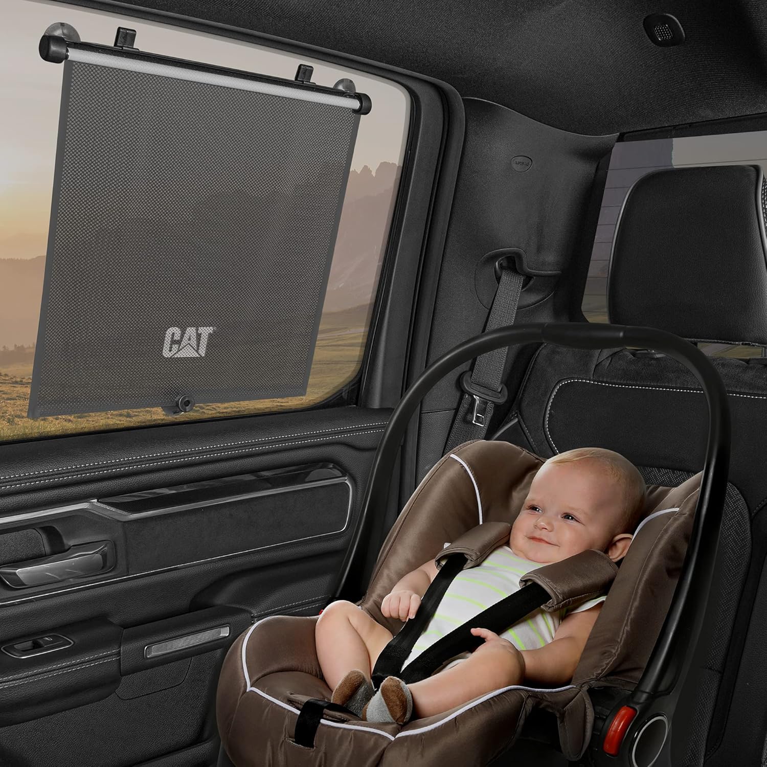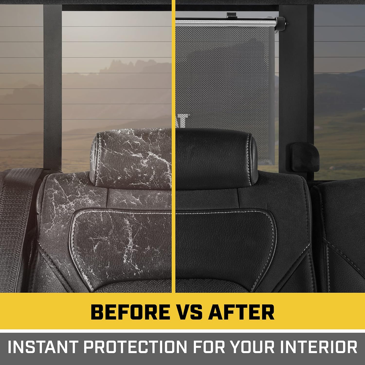 CATERPILLAR UNIVERSAL RETRACTABLE PULL-DOWN BACK SEAT SIDE WINDOW SHADES FOR UV SUN PROTECTION:
