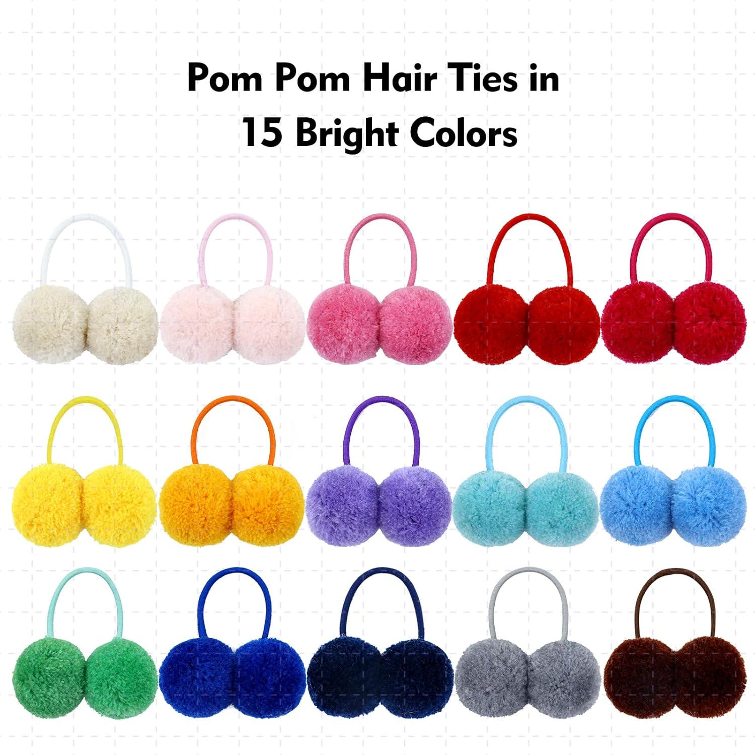 Bundle contains: 30 items(15 pairs) cute pompom hair ties within the package deal.