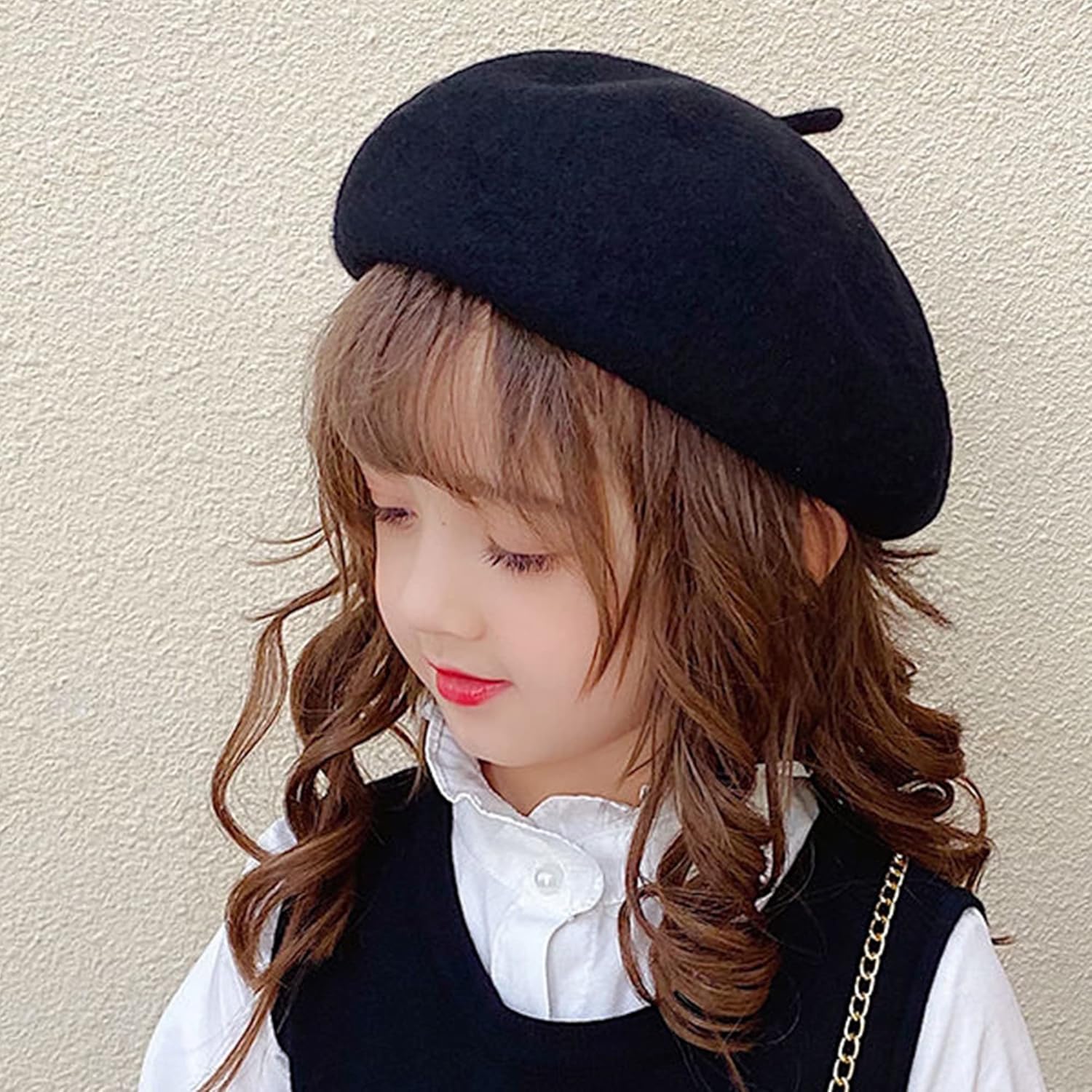 Traditional French Berets for Child-Ladies Strong Wool Mix Artist Beanie Cap Toddler Heat Painter Beret 20.5″ match for 2-6 Years