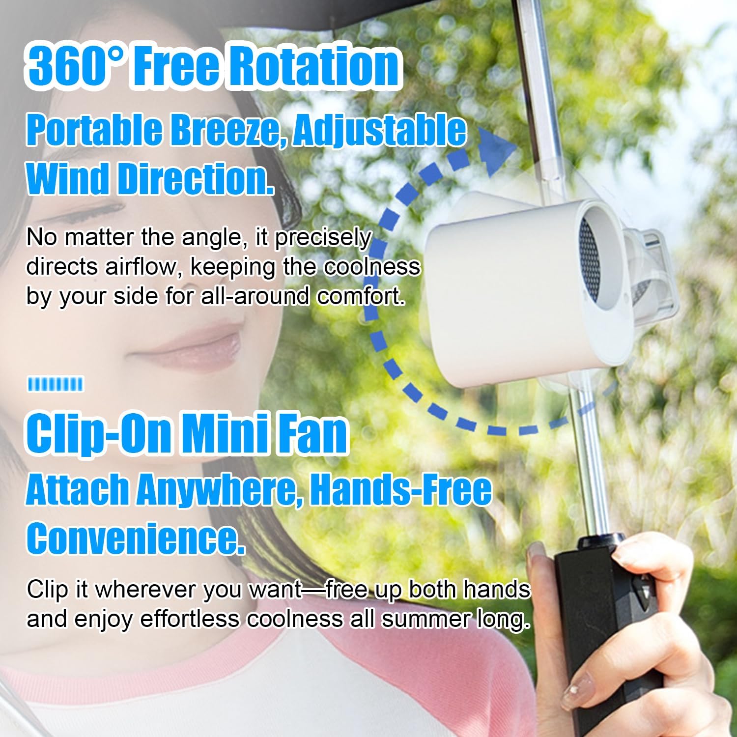 【Clips Anyplace & Anti-Slip Design】Upgraded Extremely-strong silicone clamp Mini Clip Fan, excellent for umbrella poles,stroller frames, bicycle handlebars, golf cart canopies, workplace desks, and clothes collars and anyplace if you want some cool airflow.Clip max open width 2.5 inches. Versatile clip maintains grip even throughout bumpy rides